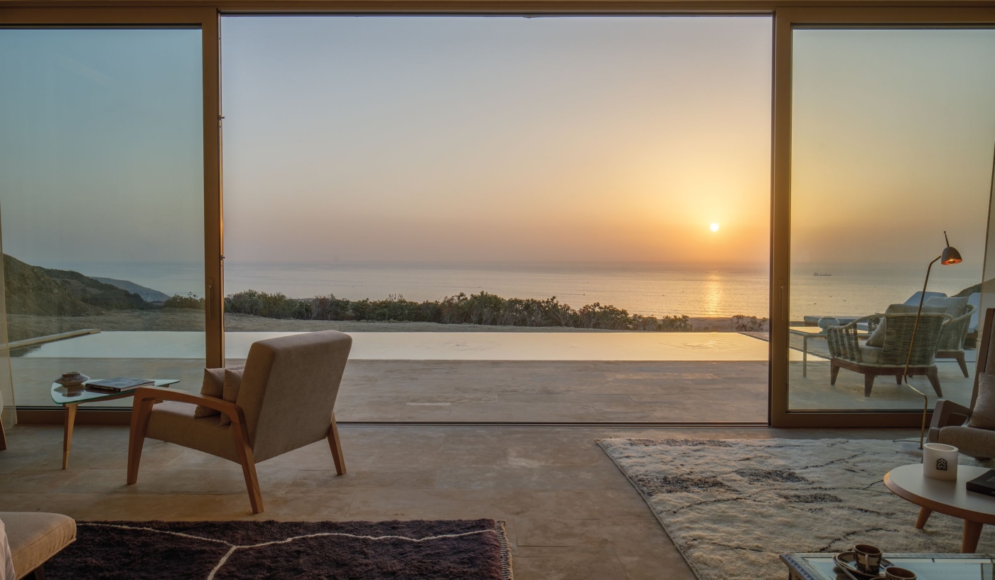 Ocean-view suites and villas are built in stone, with private gardens, panoramic windows and large infinity pools open to the breeze.