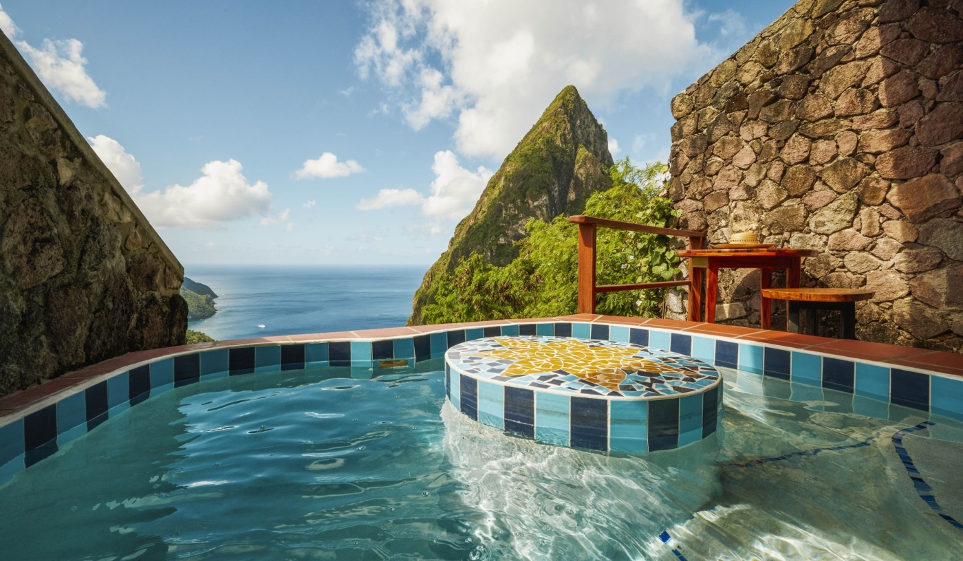 This is cliffside luxury at its most breathtaking, with open-air suites gazing out to the iconic Pitons and sea