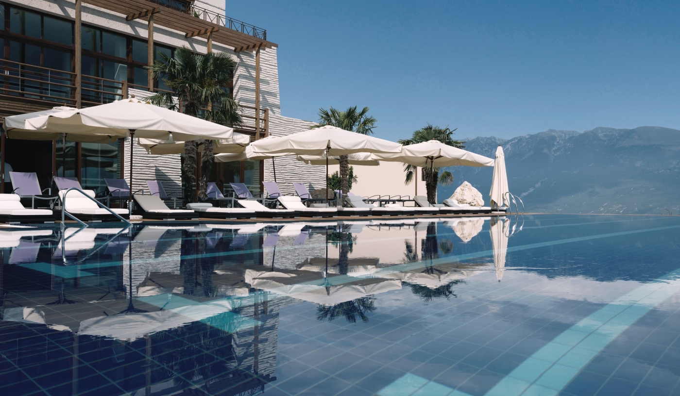 A multi-award-winning spa sanctuary with saunas, salt lake, hammam and serene indoor-outdoor pools overlooking Lake Garda.