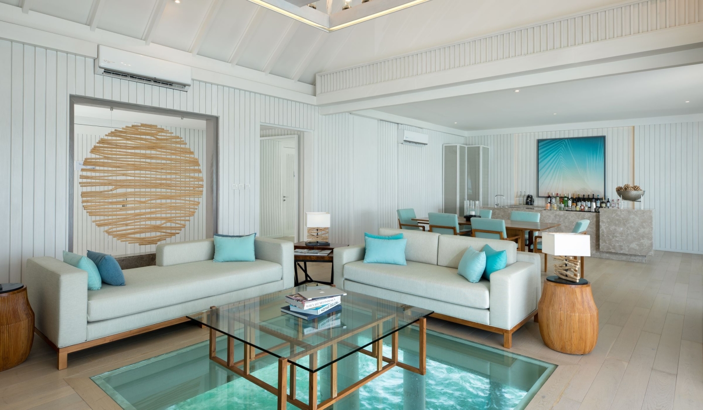 The Romantic Pool Water Villas are a favourite among couples, complete with overwater pool, hanging bird’s-nest love seat and drop-down movie projector