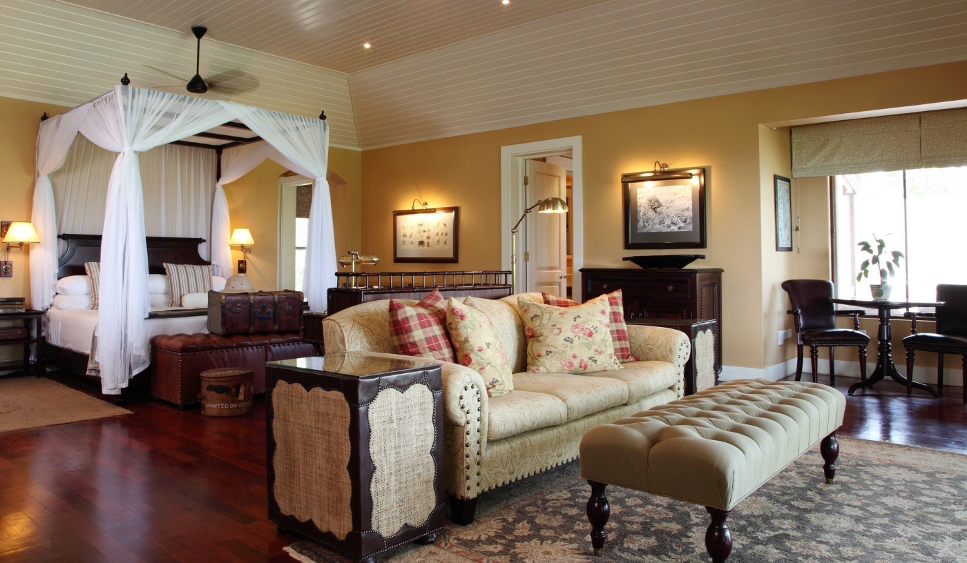 Intimate colonial-style lodge, like walking into a scene from Out of Africa