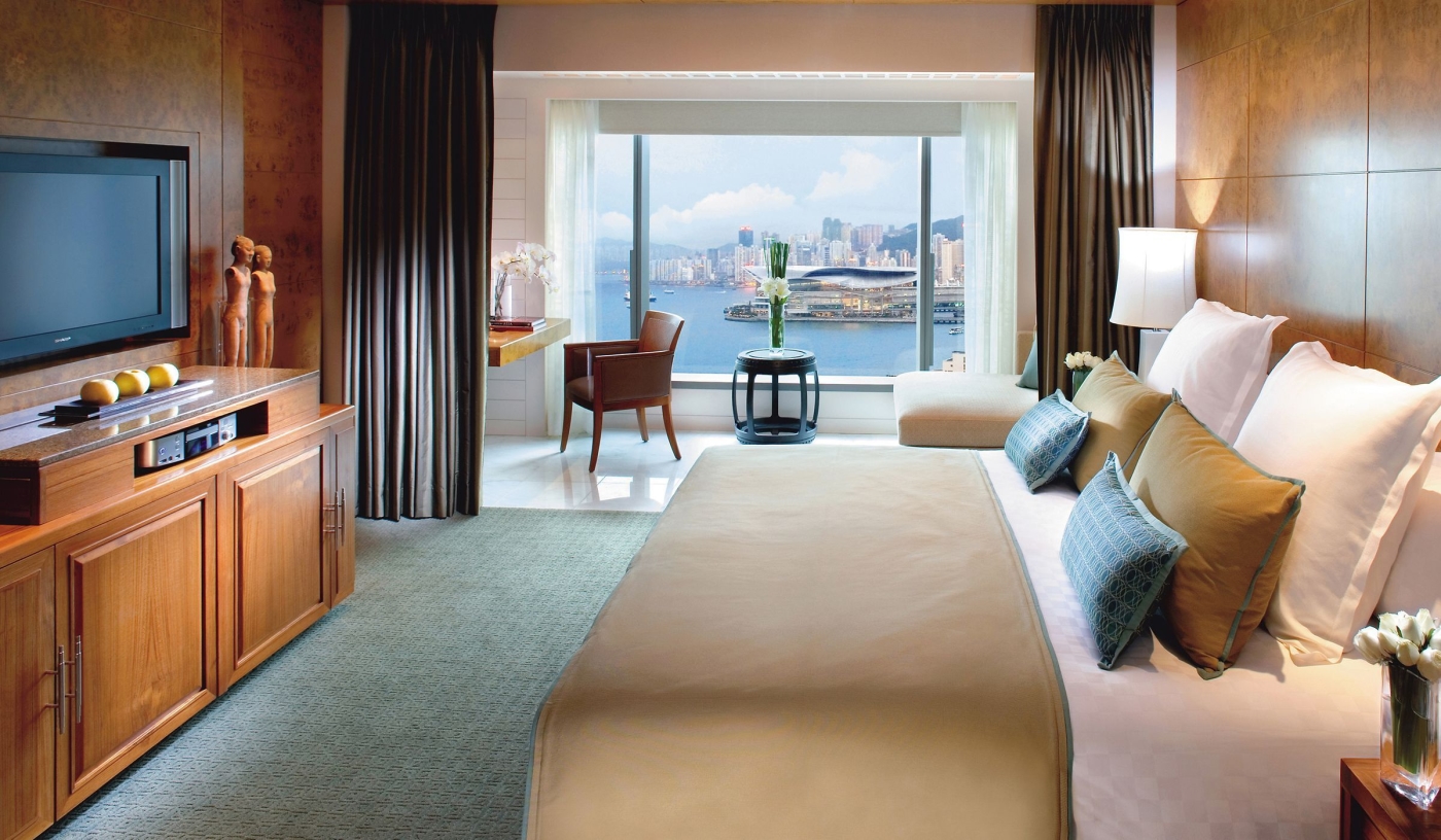 Stay in a harbour view room, decorated in Jim Thompson silks, for iconic views of the Hong Kong skyline.