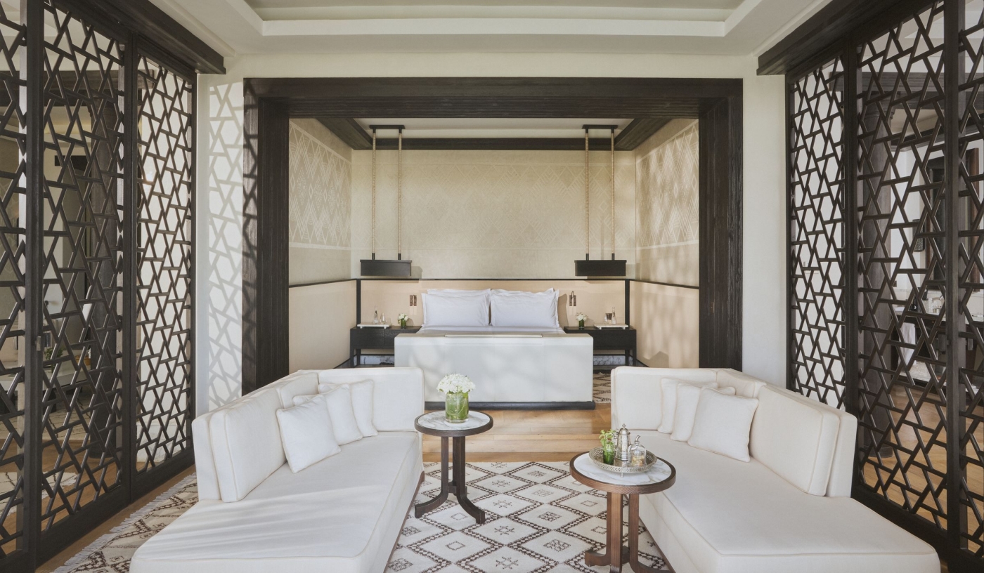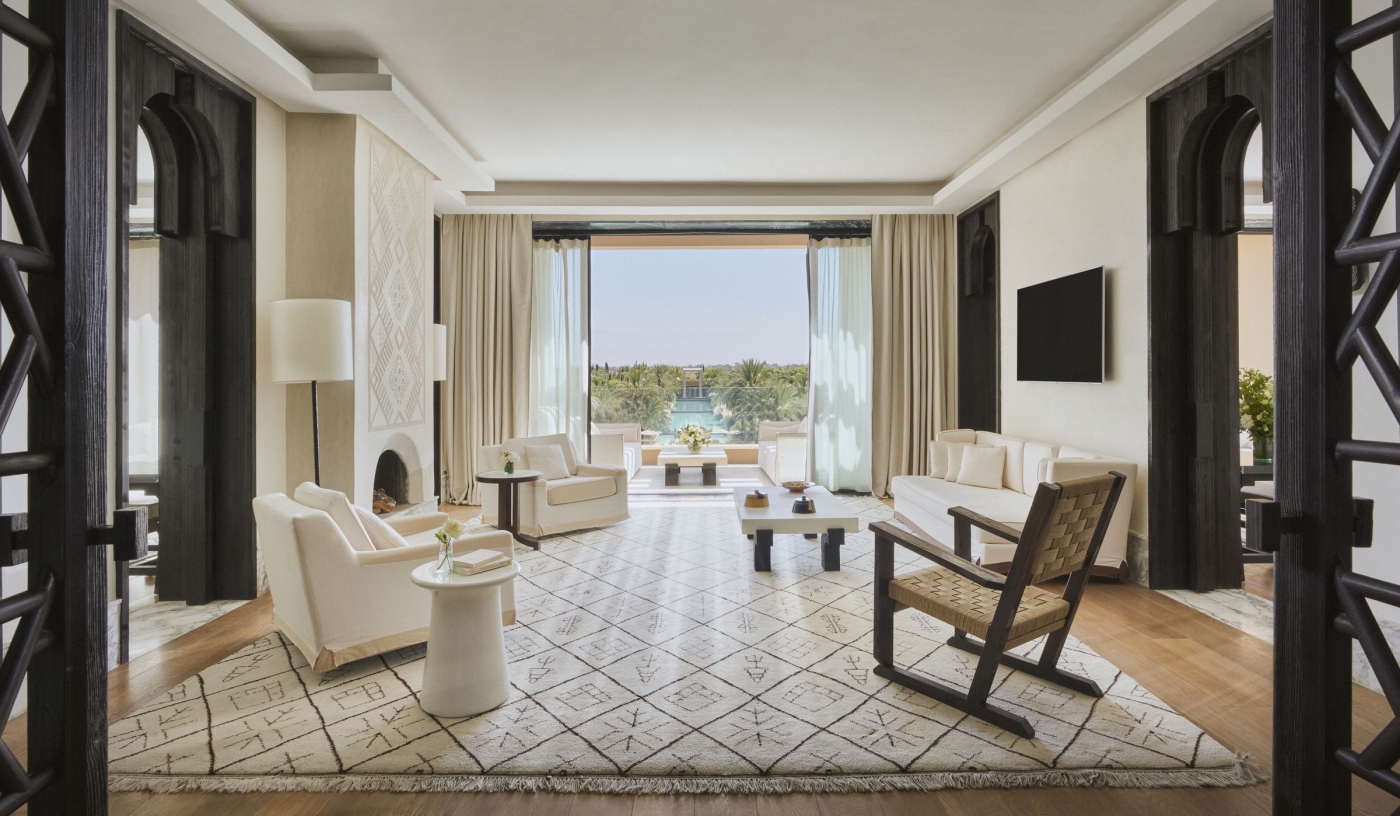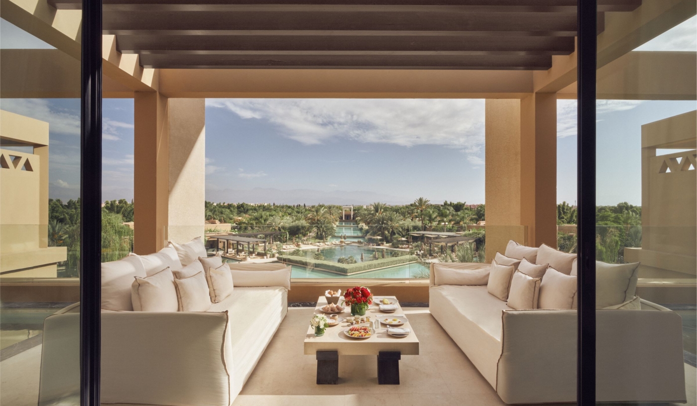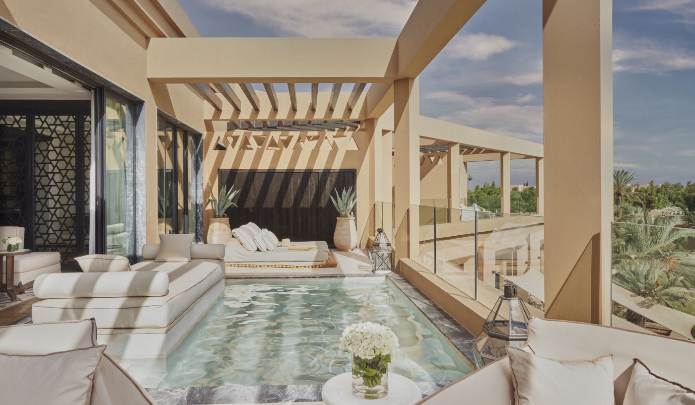 Suites and villas come with private plunge pools and terraces overlooking tranquil gardens and the snow-capped Atlas Mountains.