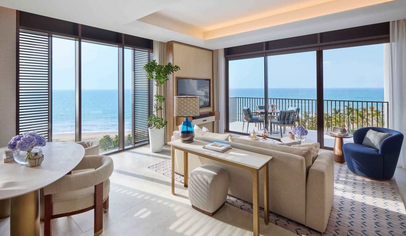 Framed by rugged mountains and the Gulf of Oman, Al Waha at Shangri-La Barr Al Jissah is a family-friendly coastal retreat offering spacious sea-facing rooms, a winding lazy river, world-class dining and easy access to Muscat’s cultural sights and golden beaches.