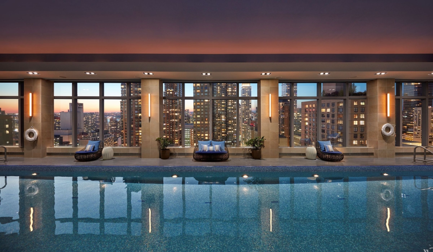 Set above Columbus Circle, the hotel’s vantage point takes in sweeping views of Central Park and the Hudson River.