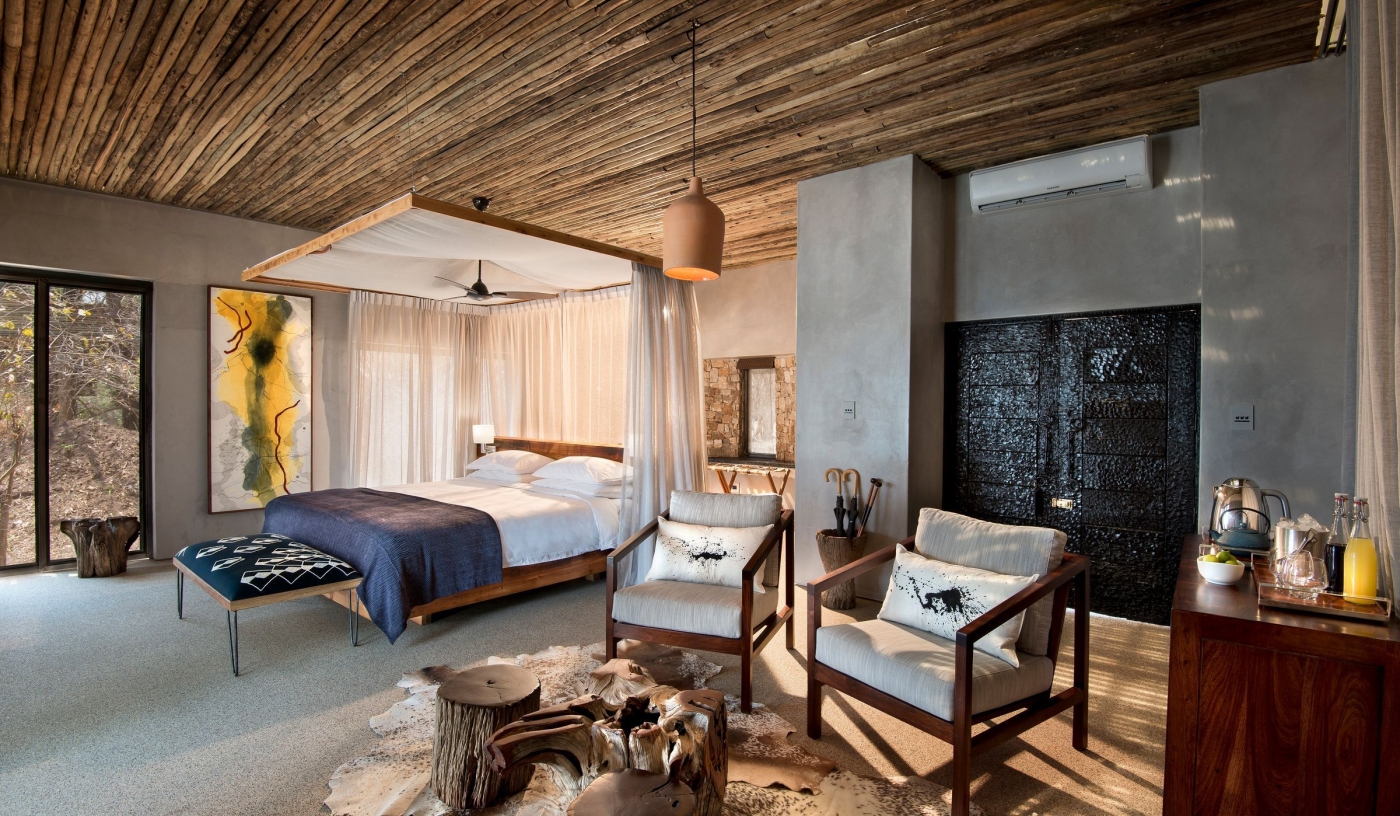 A sleek safari lodge on a private stretch of the Zambezi River, 40 kilometres upstream from Victoria Falls.