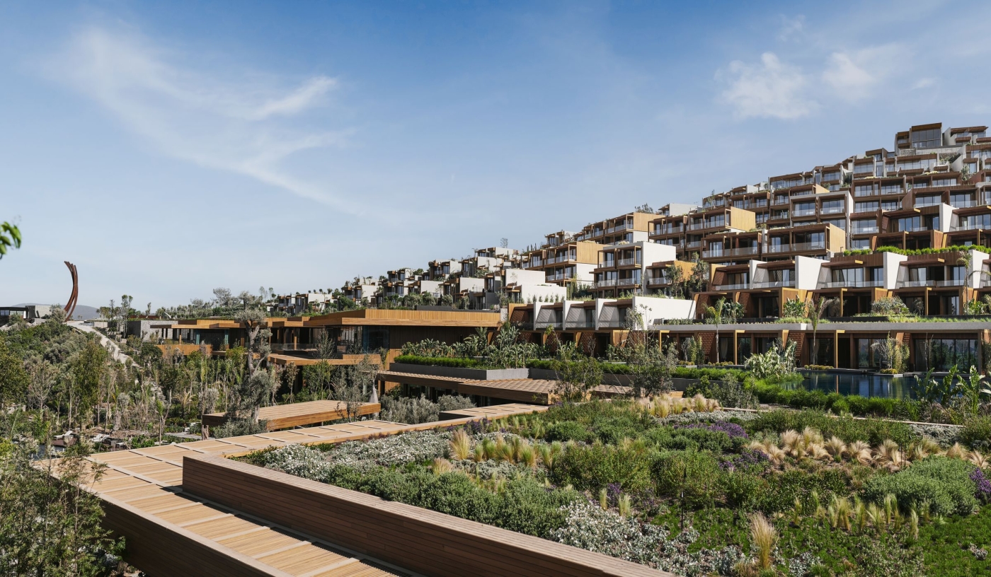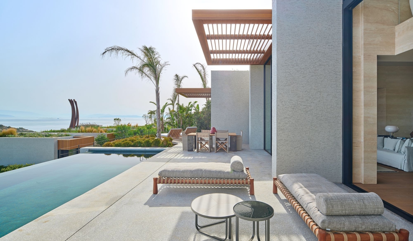Sleek suites and villas scattered across lush hillsides, with sea views, private pools and standout options like the vast Presidential Hill Villa.