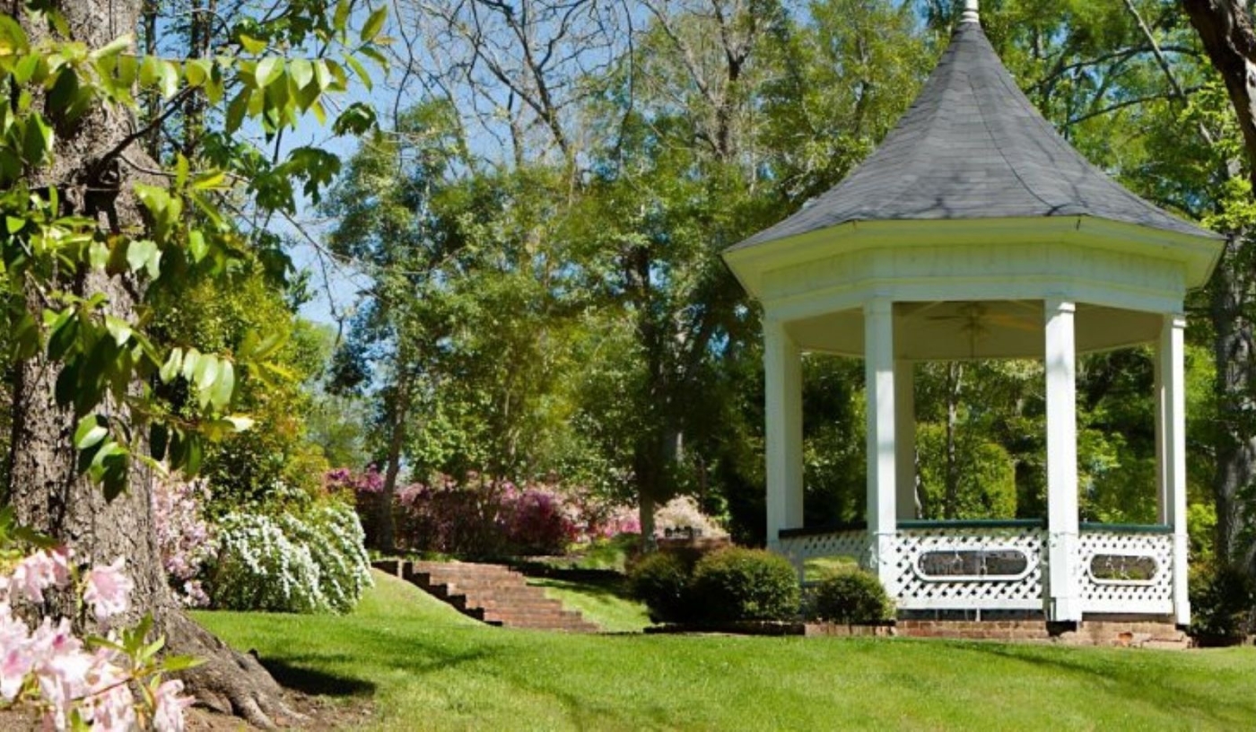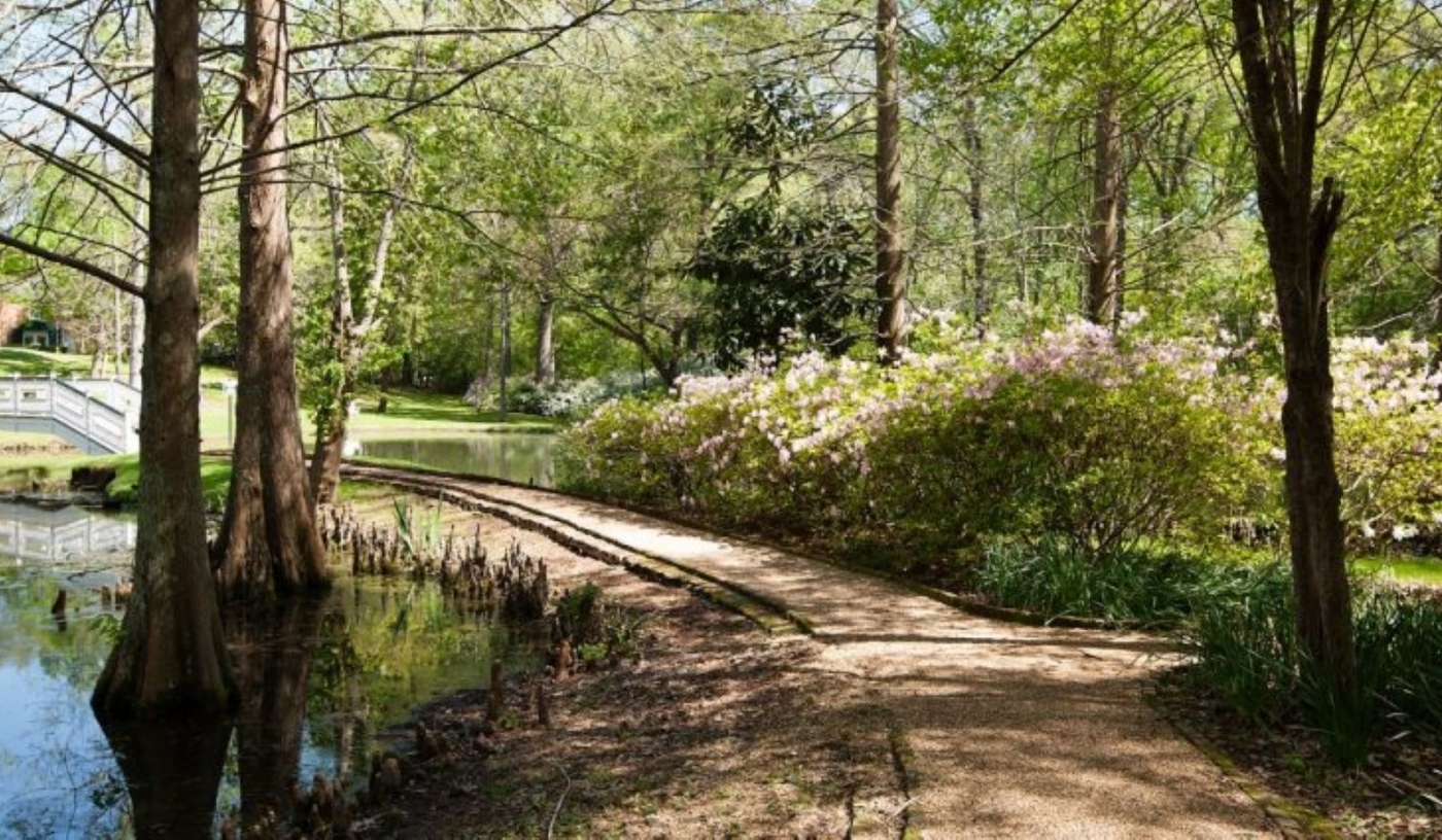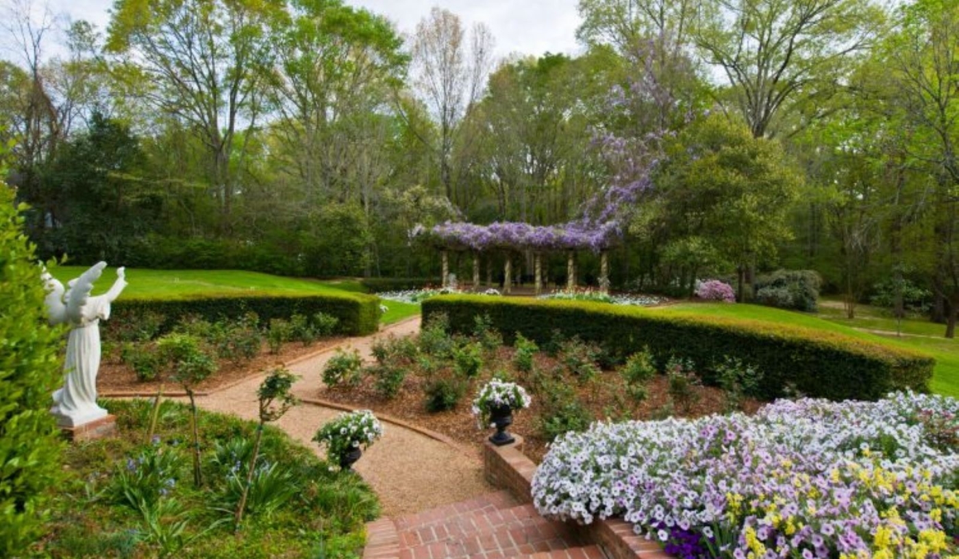 Antiques, period décor and four-poster beds set the tone, while 26 acres of gardens invite quiet strolls beneath magnolia trees.