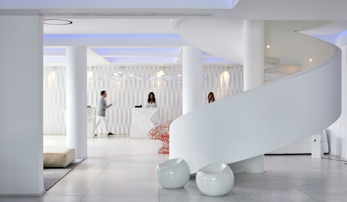 With its enormous lobby filled with flying books, ceramic safari animals and kitsch white-leather sofas with ‘I heart Mykonos’ cushions, there’s undoubtedly a playful side to this prominent member of Leading Hotels of the World. But don’t mistake playful with a compromise on luxury; check in here and you’re guaranteed to feel pampered.