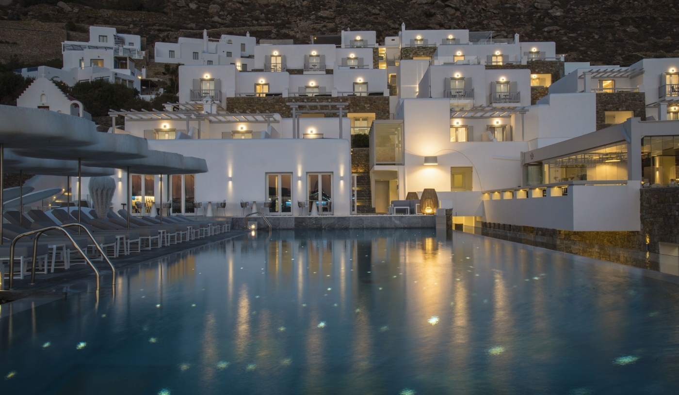 Tucked against the backdrop of rocky Aegean cliffs, just two kilometres from Mykonos Town, this stylish member of Small Luxury Hotels of the World offers breathtaking views of the twinkling marina, turquoise ocean and glorious Cycladic sunsets.