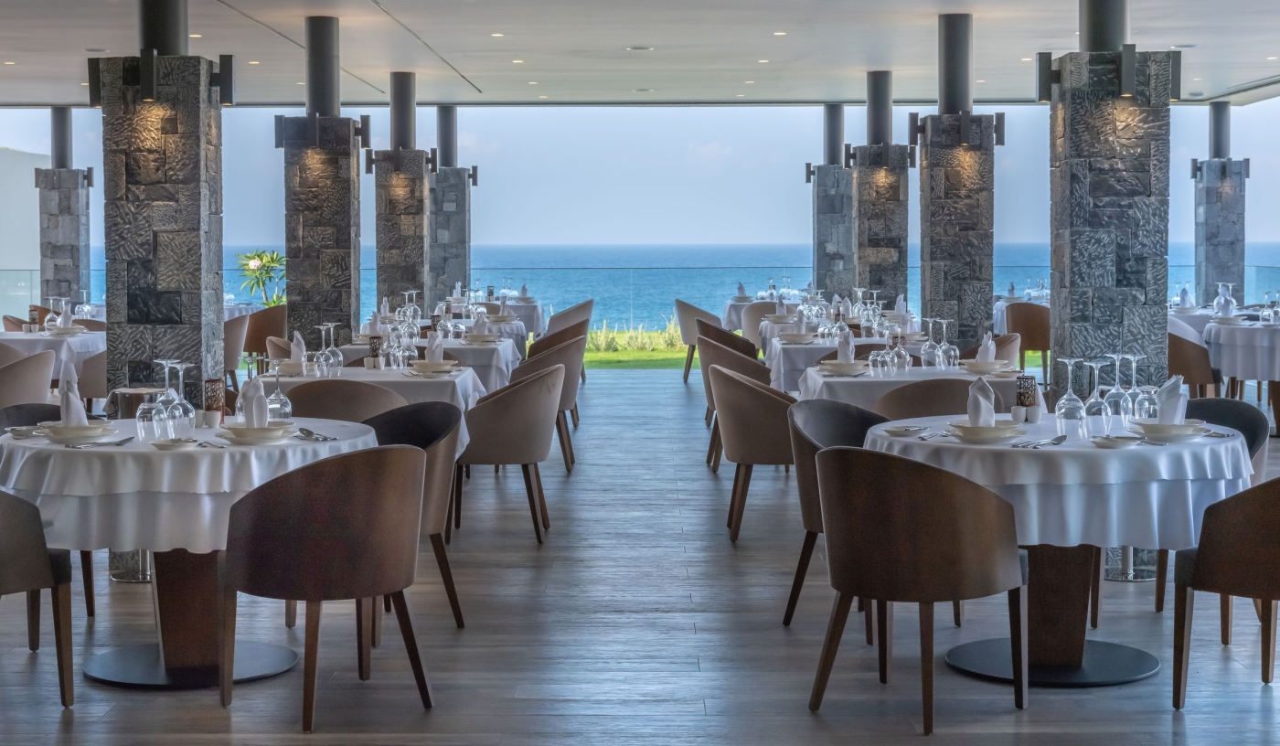 Breakfast is served high on the hill with sweeping views, while dinner choices include seafront seafood or prime grilled meats.