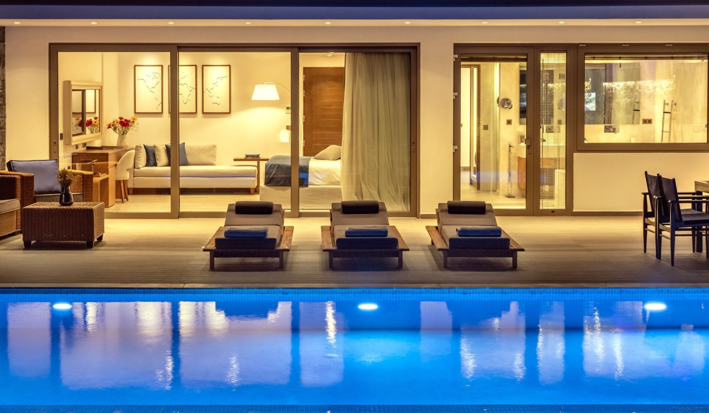 Even the lead-in suites include private salt-water pools, outdoor dining and sun loungers set for long hours beside the water.