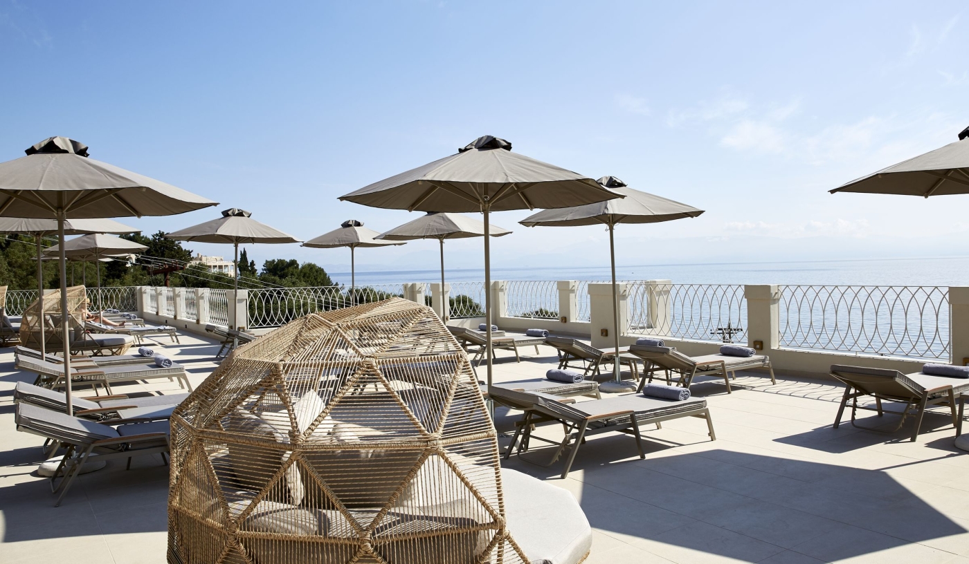 Set on an idyllic, lush green hilltop overlooking picturesque Benitses Bay, with seemingly endless sea views, it’s hard not to be impressed by the elevated style and contemporary heights of this lavish spa and beach resort.