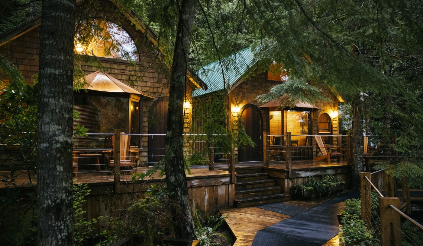 Choose between ocean-facing cabins on the bay or forest cabins by streams and waterfalls, all with breathtaking views.