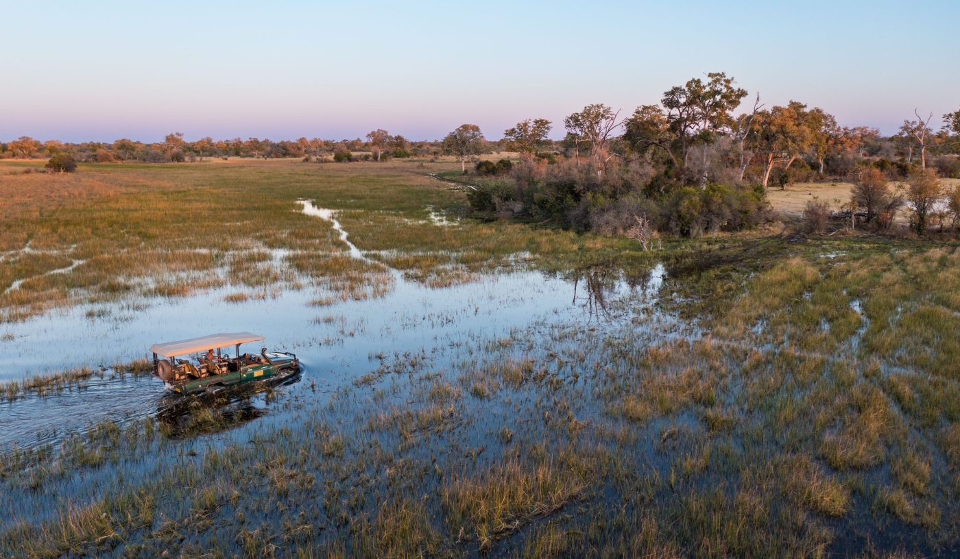 A luxurious lodge located on a private concession in the Okavango Delta, adjacent to the wildlife-rich Moremi Game Reserve.