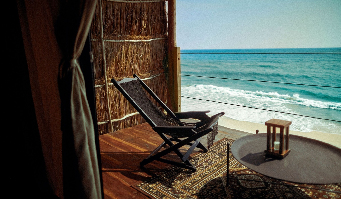 A calm setting designed for reconnection, morning yoga, sound meditations and ocean swims form part of daily life