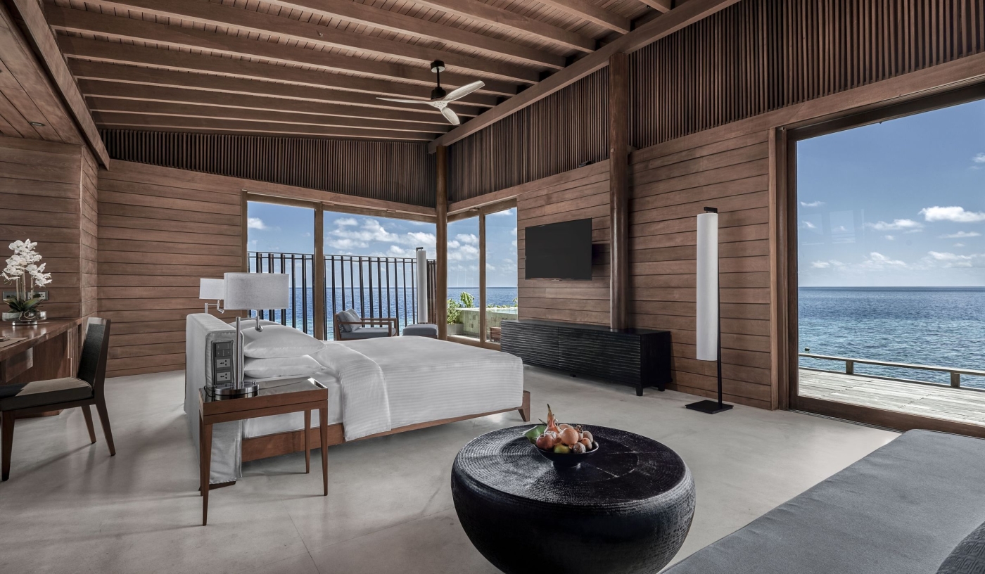 Features range from the Vidhun Spa with its five couples’ treatment villas to a yoga studio, 24-hour fitness centre and 44-metre infinity pool with picturesque ocean views