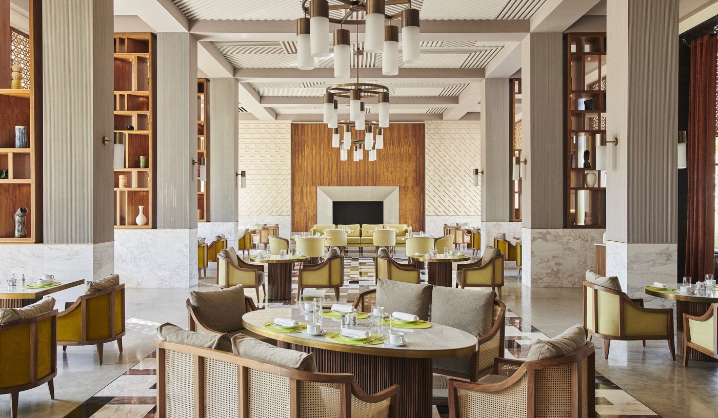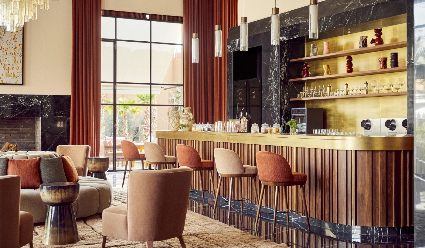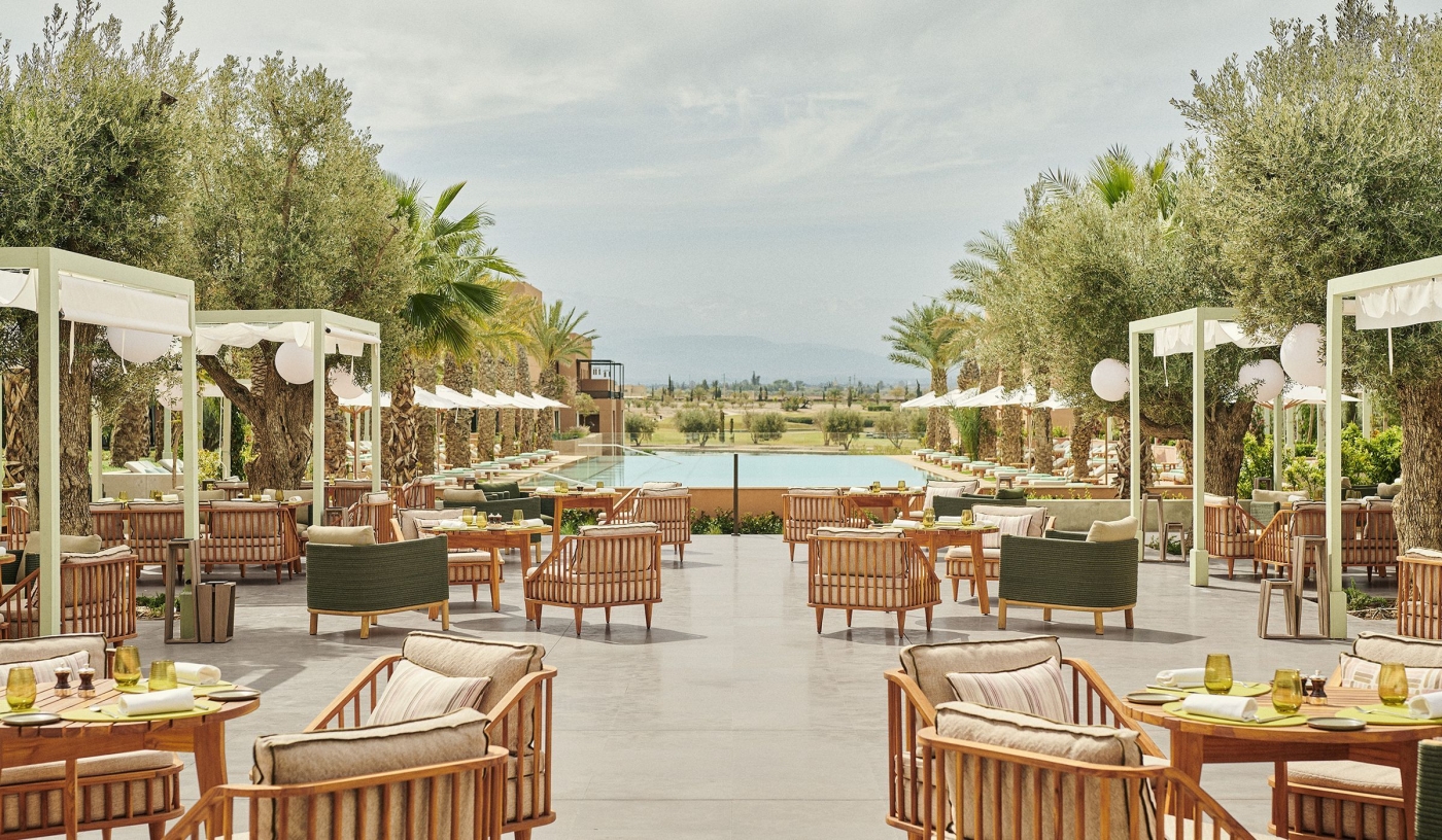 Set on the Al Maaden golf estate, the hotel offers calm surroundings with direct views of the Atlas Mountains.