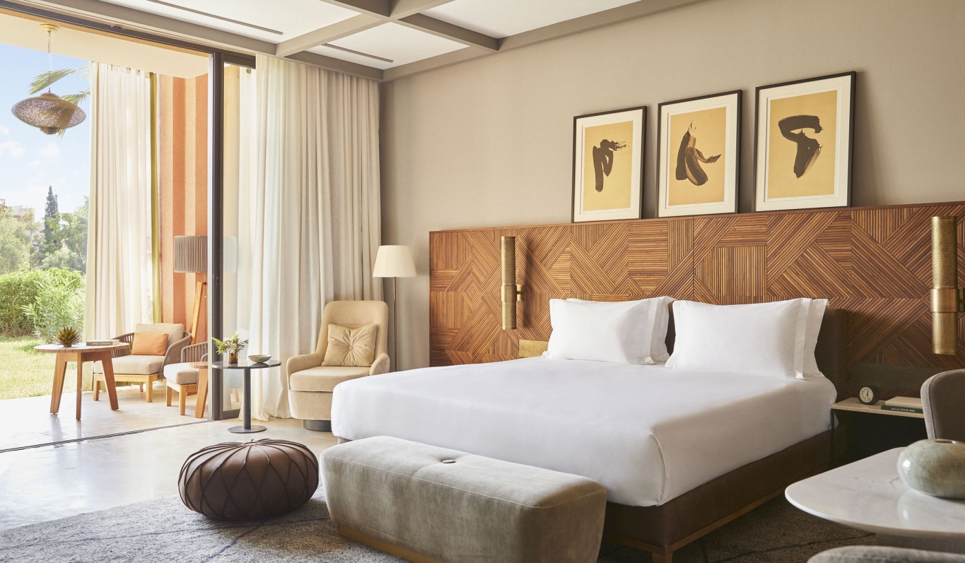 You'll find Park Hyatt Marrakech on the edge of the city, where the busy medina gives way to open sky and views of the Atlas Mountains. It offers a contrast to the city without losing sight of what people come to Marrakech for.