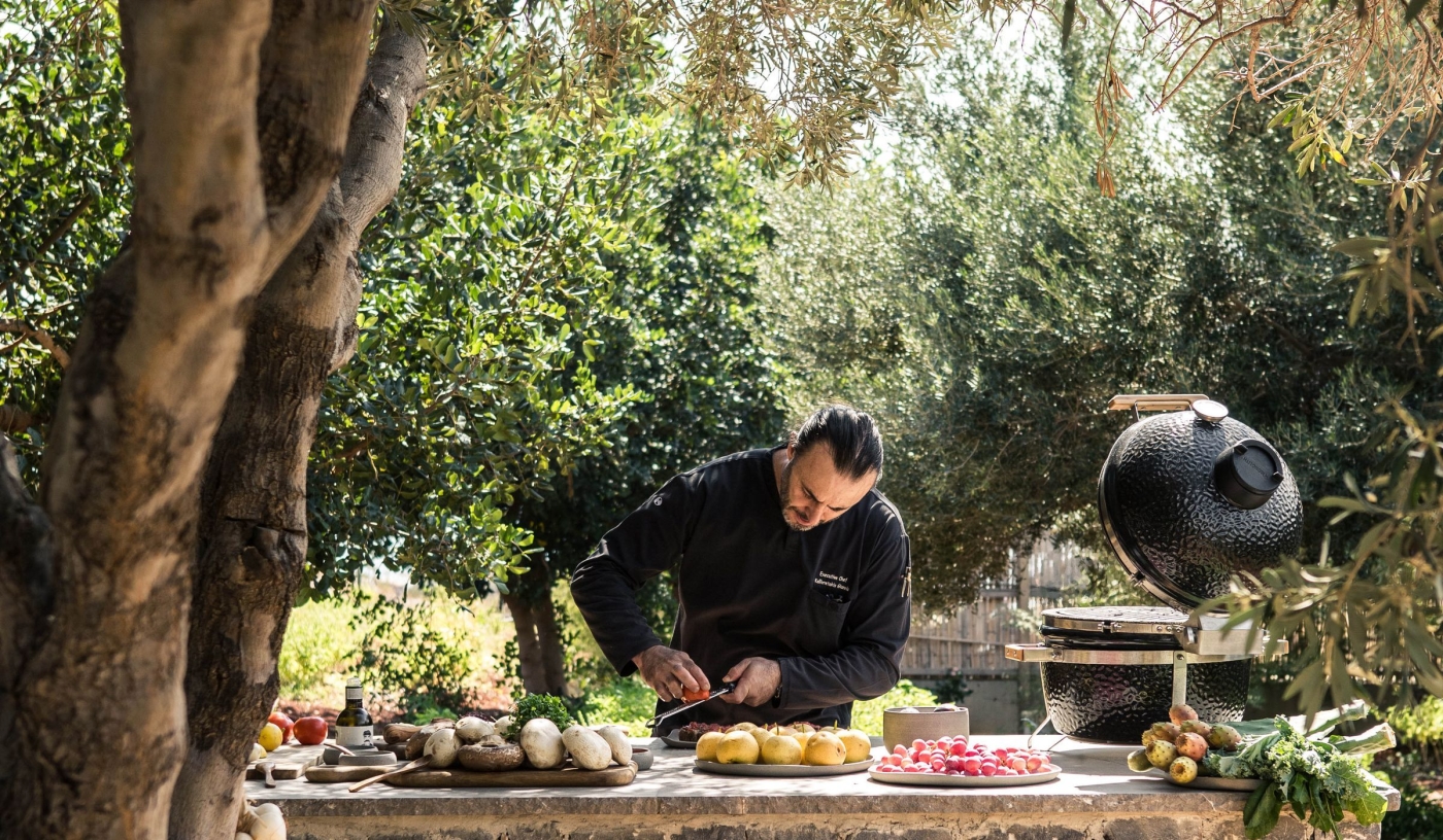 The Blue Door taverna, once a fisherman’s home, serves authentic Cretan dishes with produce from the hotel’s organic garden.