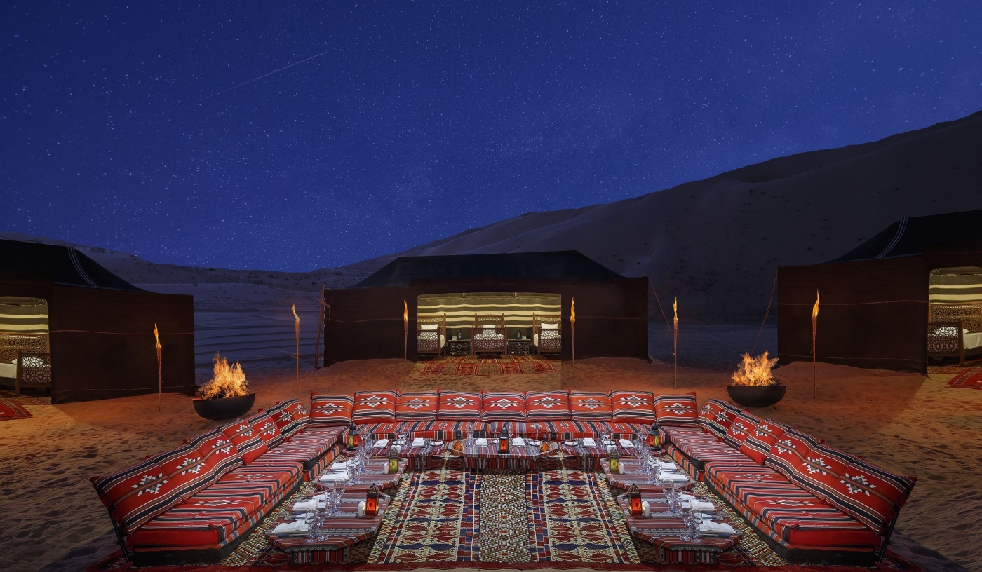 Activities reflect both the desert location and cultural traditions, from stargazing at night and fat-tyred cycling in the dunes to morning desert walks and fireside BBQs beneath star-laden skies