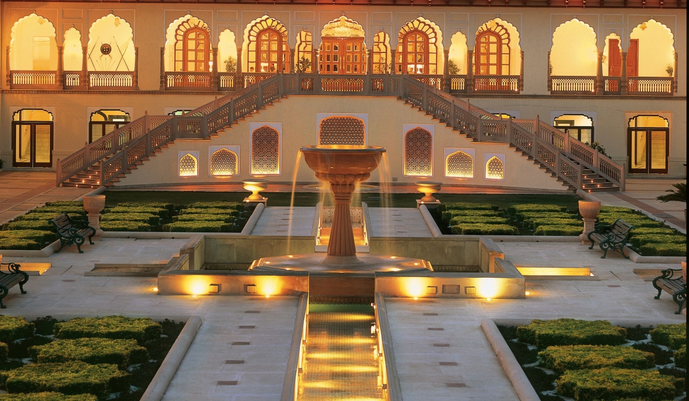 Wander lush gardens, dine like royalty and explore Jaipur’s vibrant Pink City next door.