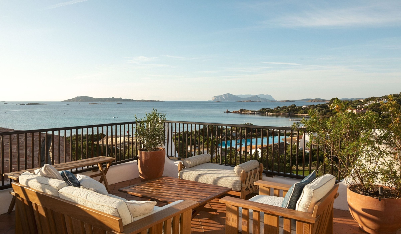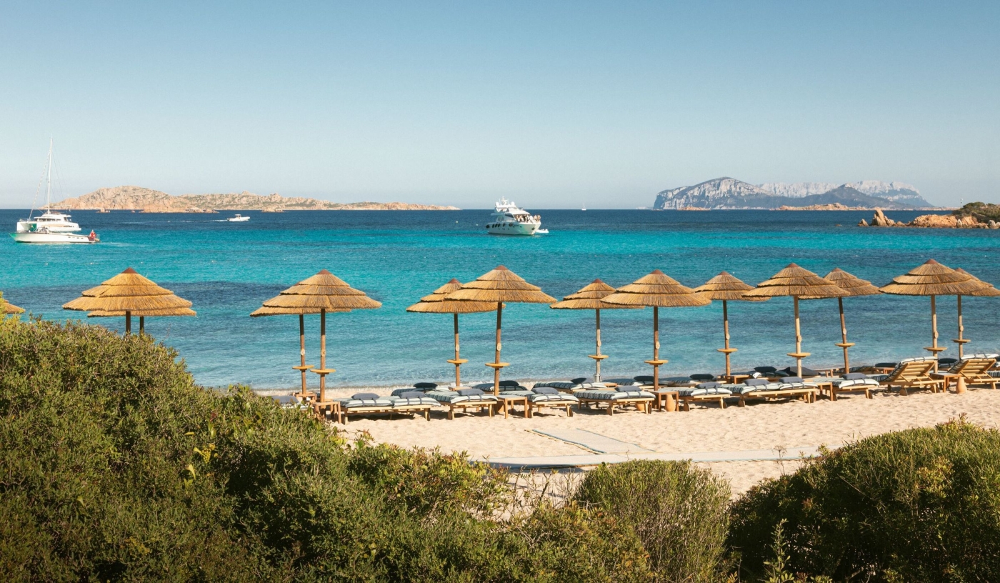 Overlooks one of Sardinia’s most exclusive bays with direct access to a pristine private beach on the Costa Smeralda.