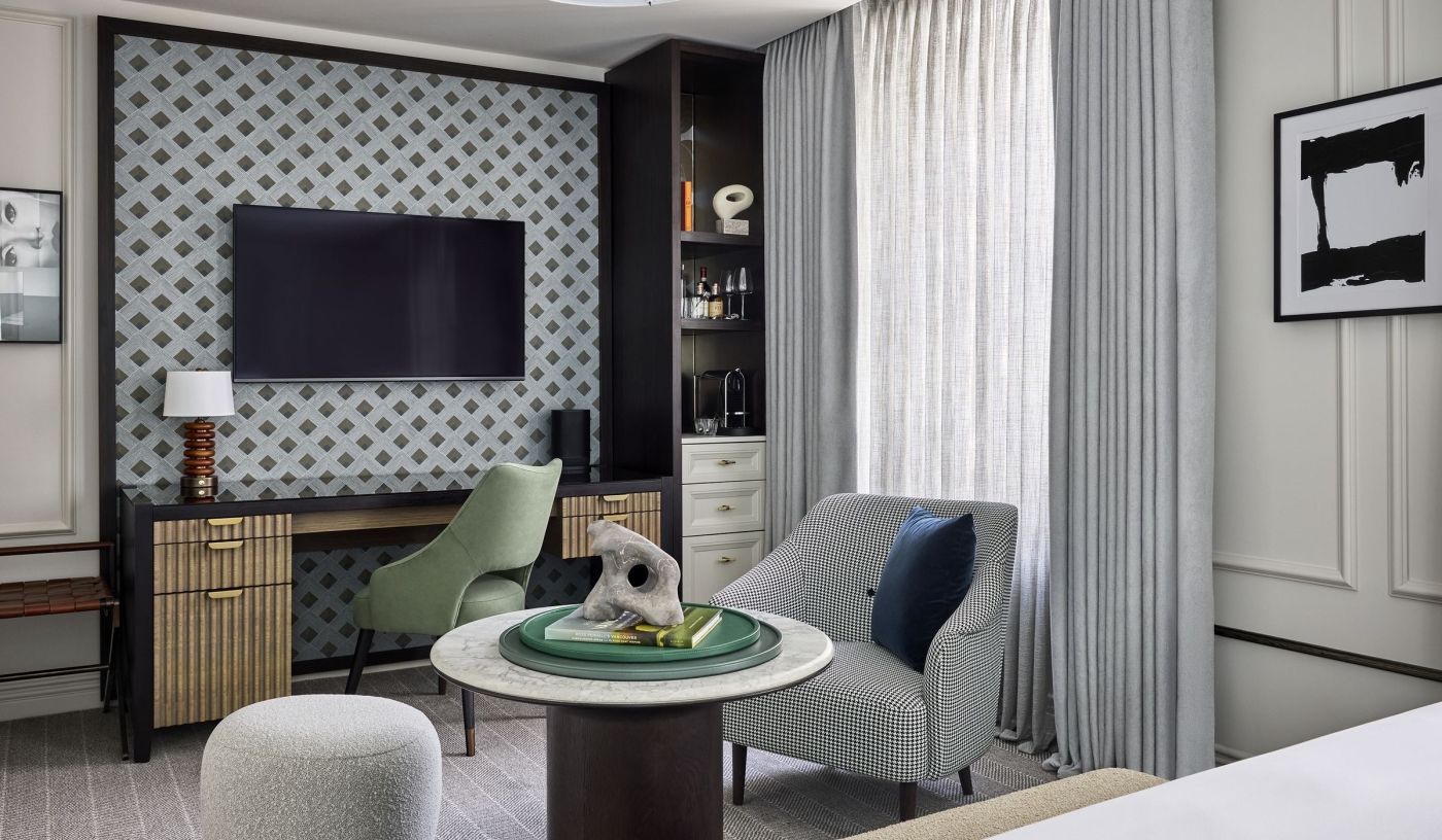 Sophisticated rooms and suites pair heritage charm with sleek modern design, many with views over the city or hotel courtyard.