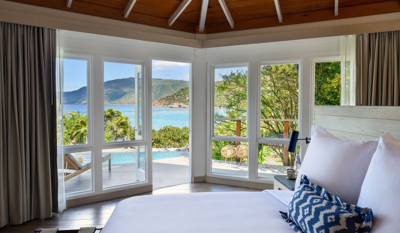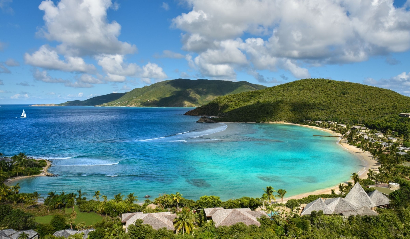 Set on Virgin Gorda’s west coast, the resort sits on an idyllic half mile of white-sand beach embraced by forested hillsides, with views across a turquoise sea to a near-endless horizon.
