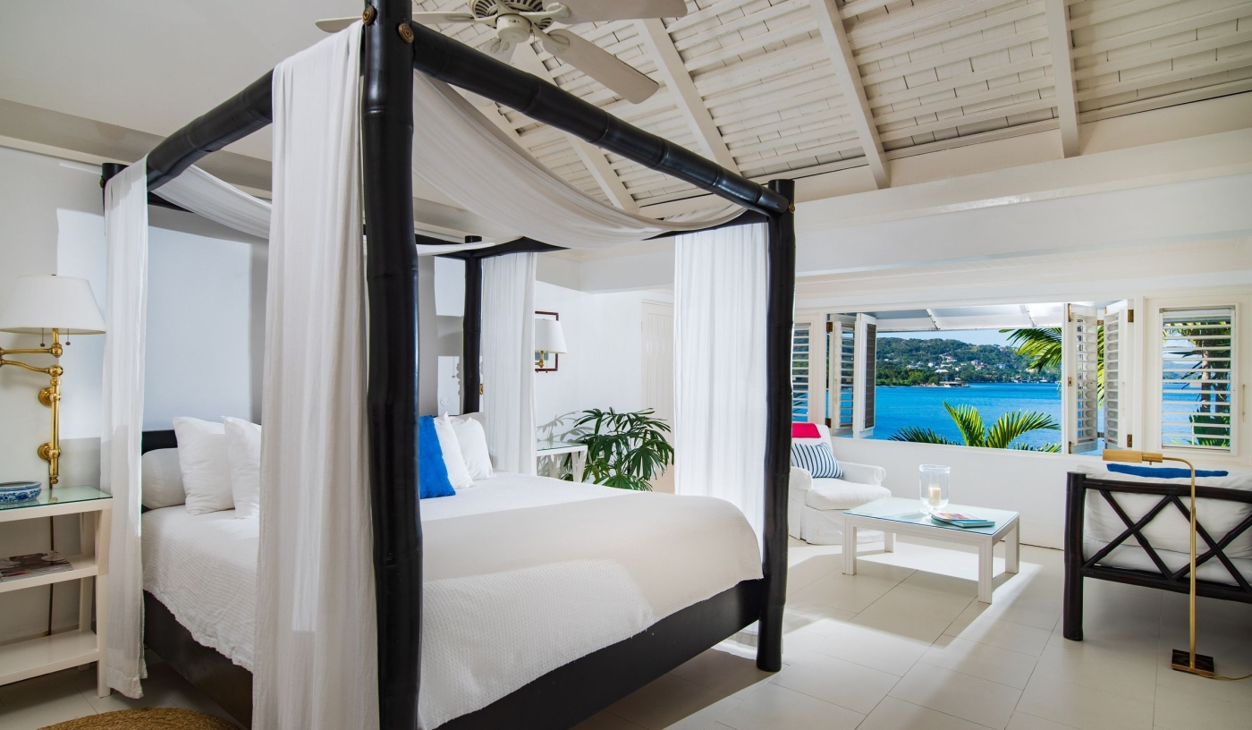 Pineapple House rooms exude Caribbean chic with breezy louvered windows, ocean views and effortless sophistication throughout