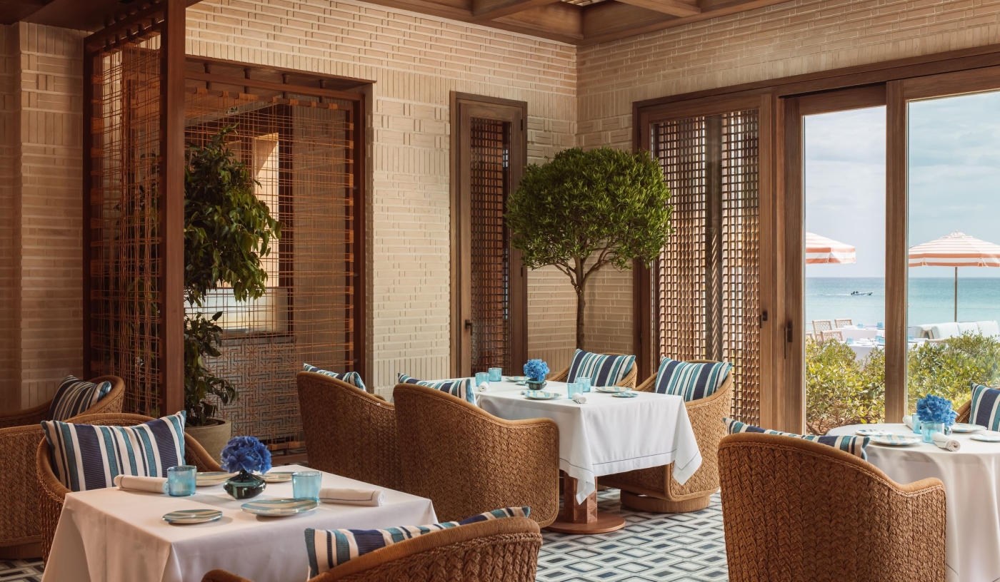 Expect refined local and Mediterranean cuisine served in serene indoor spaces or alfresco overlooking the sea and gardens.