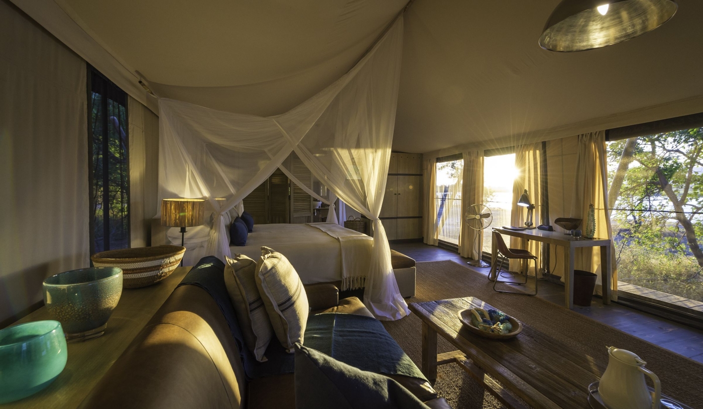 A luxurious and beautifully designed camp that's fully solar powered and built from all-natural materials, set on the banks of the mighty Zambezi.