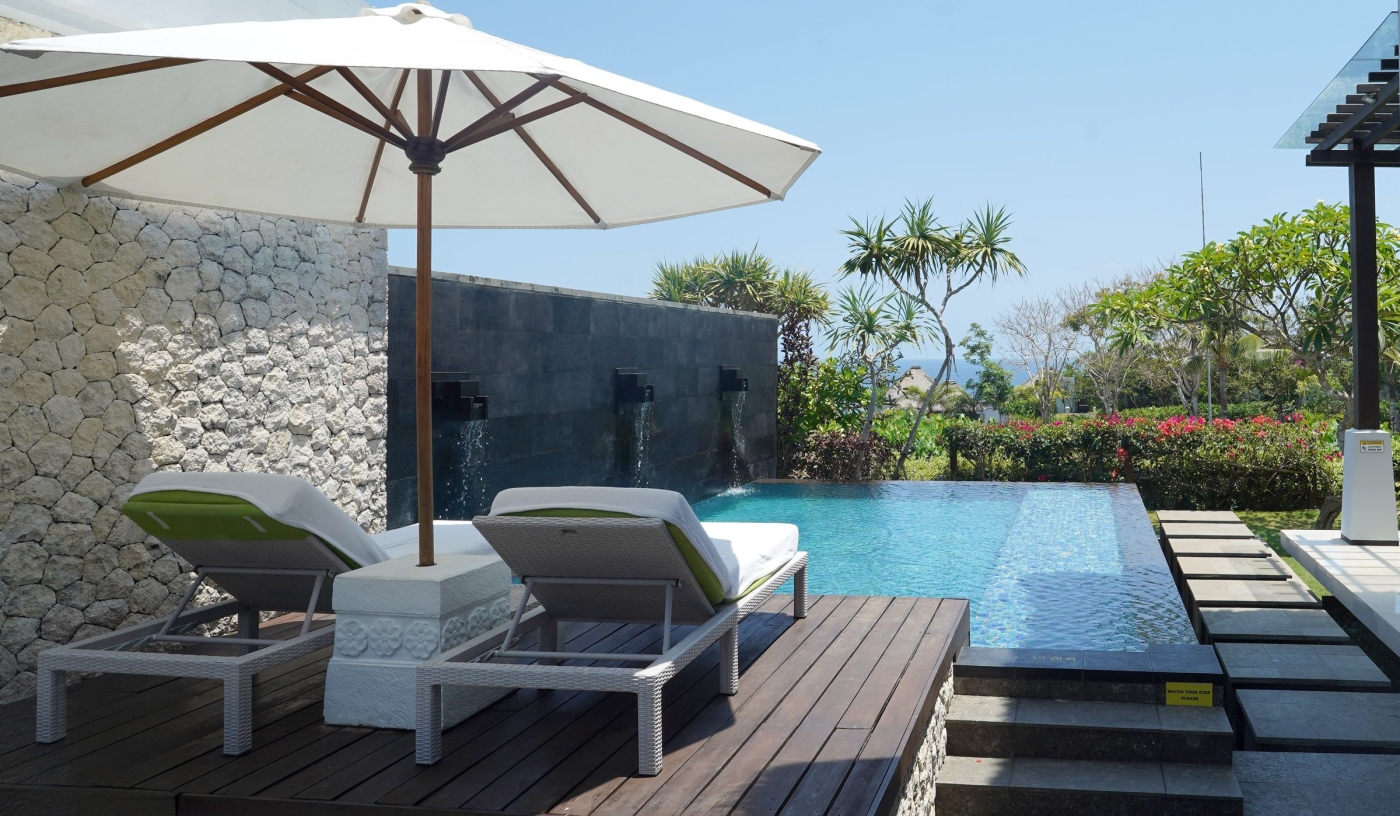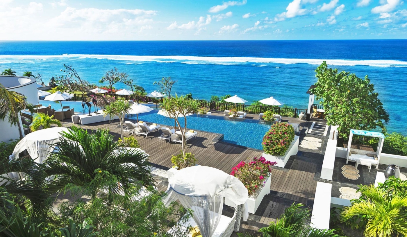 Relax on one of Bali’s rare white sand beaches with calm waters, oversized cabanas, and picture-perfect clifftop or beachside dining