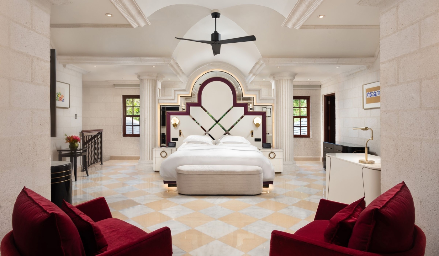 Sandy Lane’s signature coral stone design, sweeping staircases and sea-view verandas set the tone for classic Caribbean glamour on a grand scale