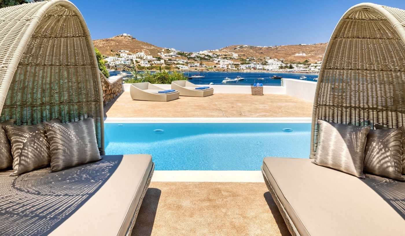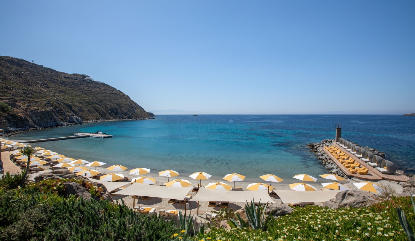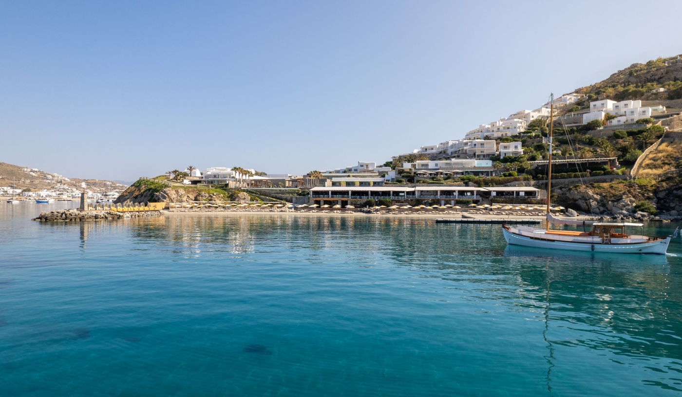 Tucked against the backdrop of rocky Aegean cliffs, just two kilometres from Mykonos Town, this stylish member of Small Luxury Hotels of the World offers breathtaking views of the twinkling marina, turquoise ocean and glorious Cycladic sunsets.