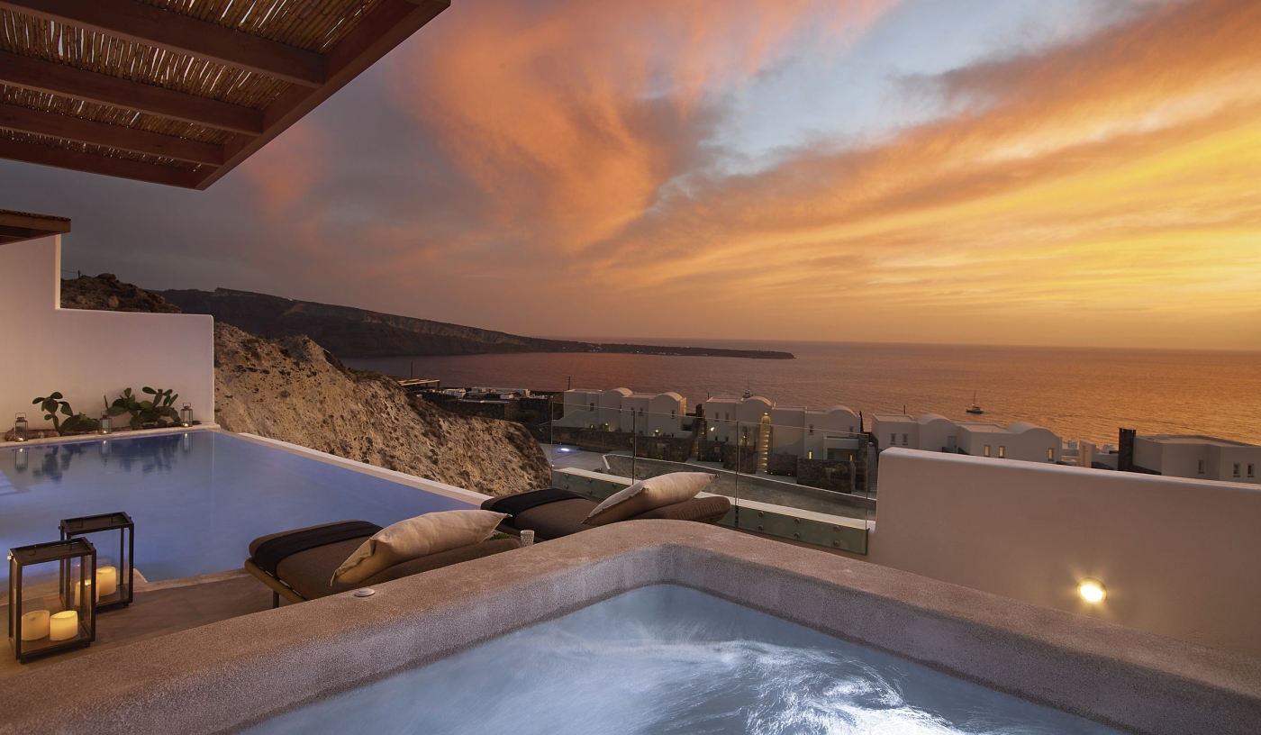 Sleek cliffside suites with whirlpool tubs, sea views, and private pools – including dreamy options for honeymooners.