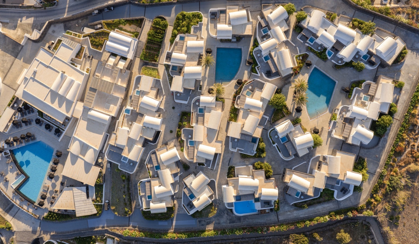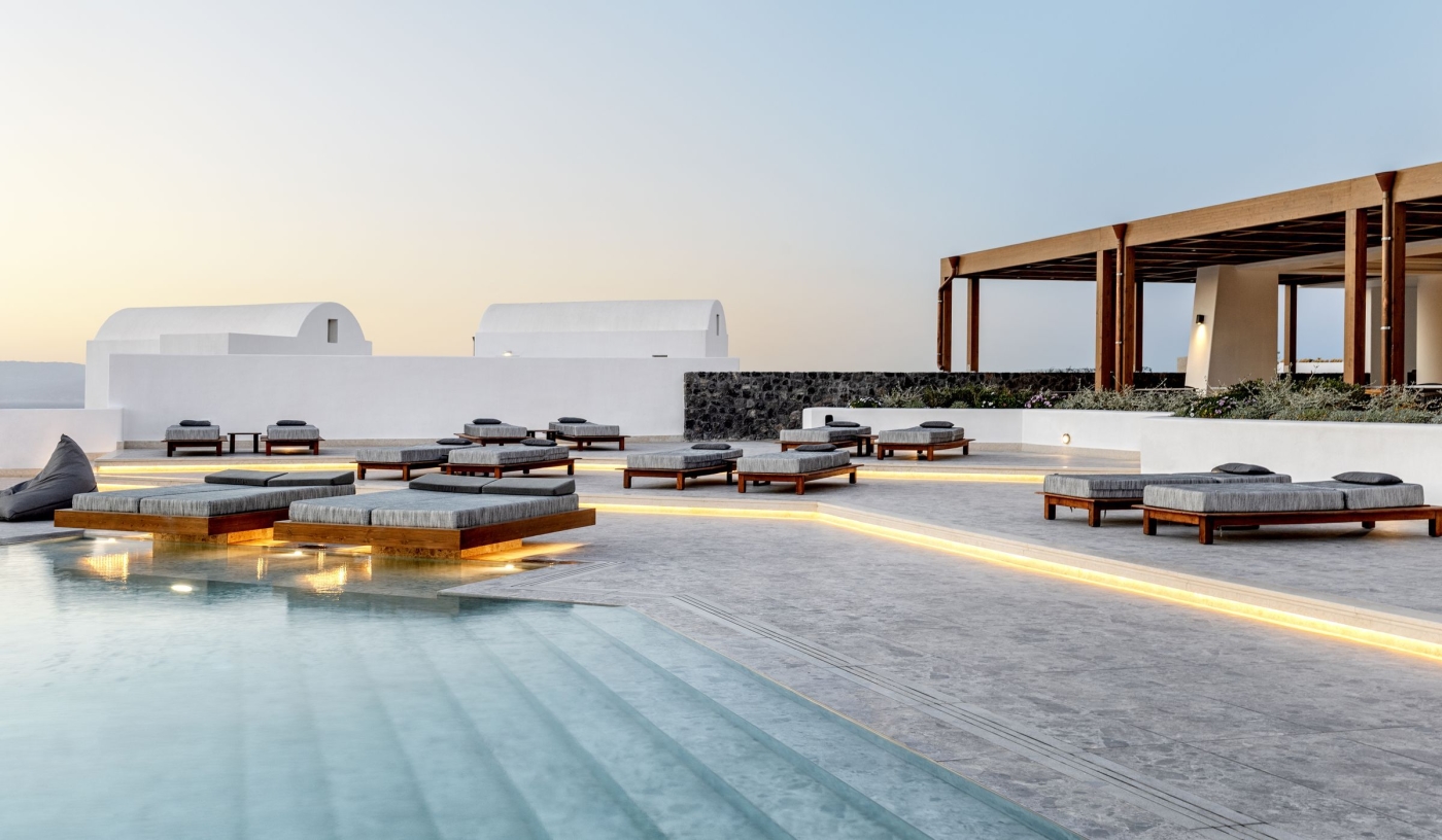 Perched atop the cliffs of Imerovigli near the highest point of Santorini’s caldera, along a scenic hiking road that connects Oia to Fira, Andronis Concept is a sophisticated wellness resort with service as polished as its smooth concrete surfaces and views as inspiring as any you’ll find in Greece.
