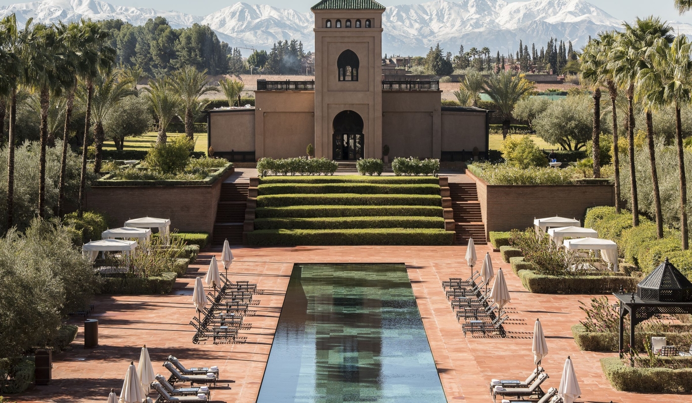 Set in an old citrus and olive farm with cinematic views of the High Atlas, this beautifully decorated resort has been designed to resemble a traditional Moroccan palace and offers both mountain-view rooms and villas with private pools.