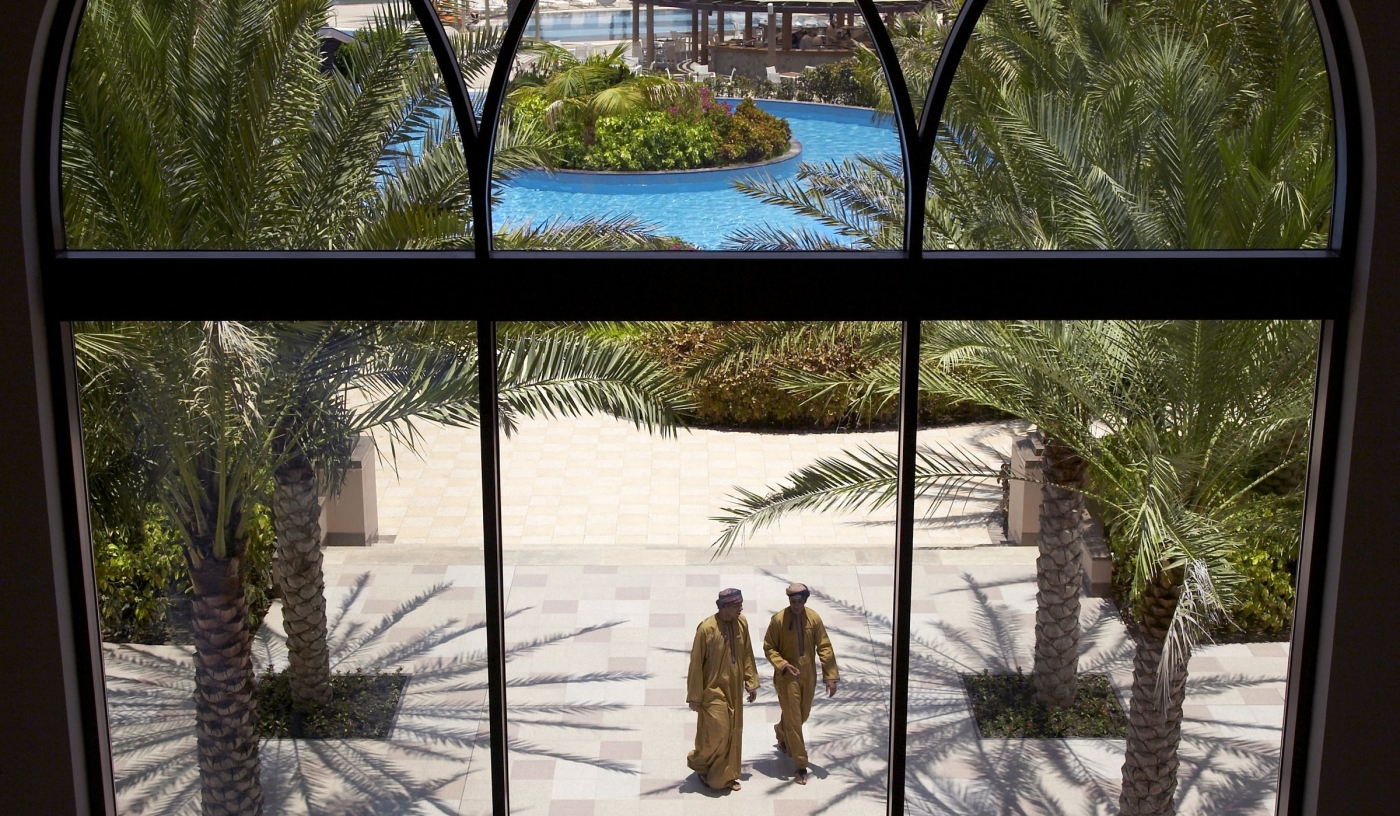 Set against the dramatic backdrop of the Al Hajar mountains with an outlook over the glittering Gulf of Oman, the Al Bustan Palace paints a spectacular picture.