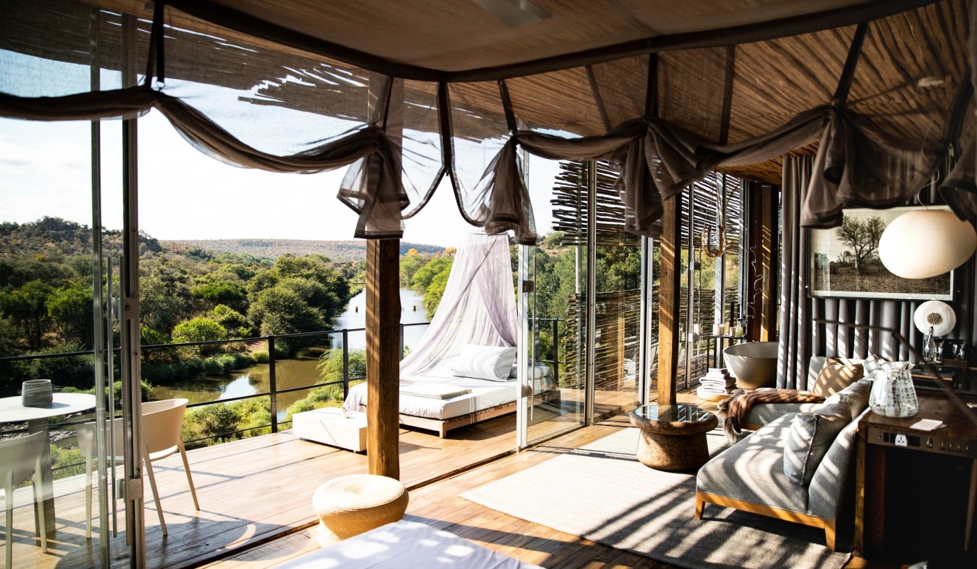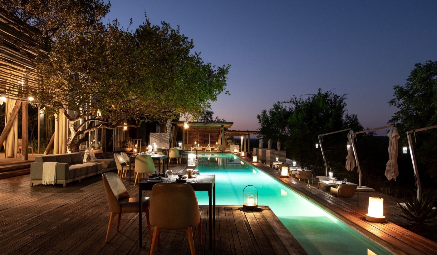 An ultra-luxe lodge on an elevated hillside overlooking the N'wanetsi River in a wild and remote concession within Kruger National Park.
