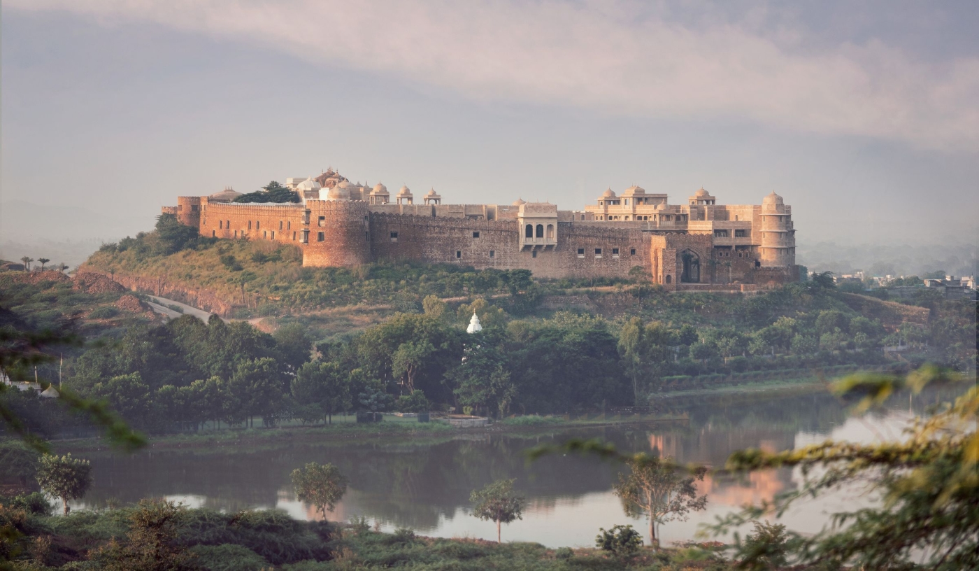 The fort walls encompass two palaces, two original temples, and 48 beautifully appointed suites with forest and village views