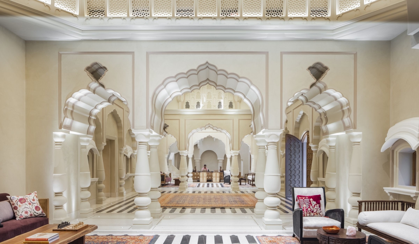 Set within 32 acres of landscaped gardens, The Oberoi Rajvilas is a tranquil haven just outside Jaipur, where grand villas and tented suites echo royal Rajasthan, and days unfold with personalised service, fine cuisine, Ayurvedic wellness and immersive cultural experiences.