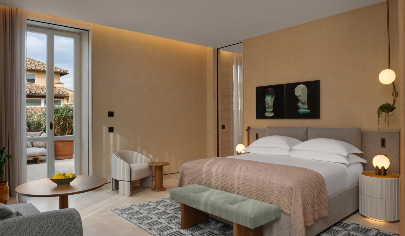 Sleek, light-filled rooms blend marble, local stone and warm tones, creating a stylish, calming retreat in the heart of the Eternal City.