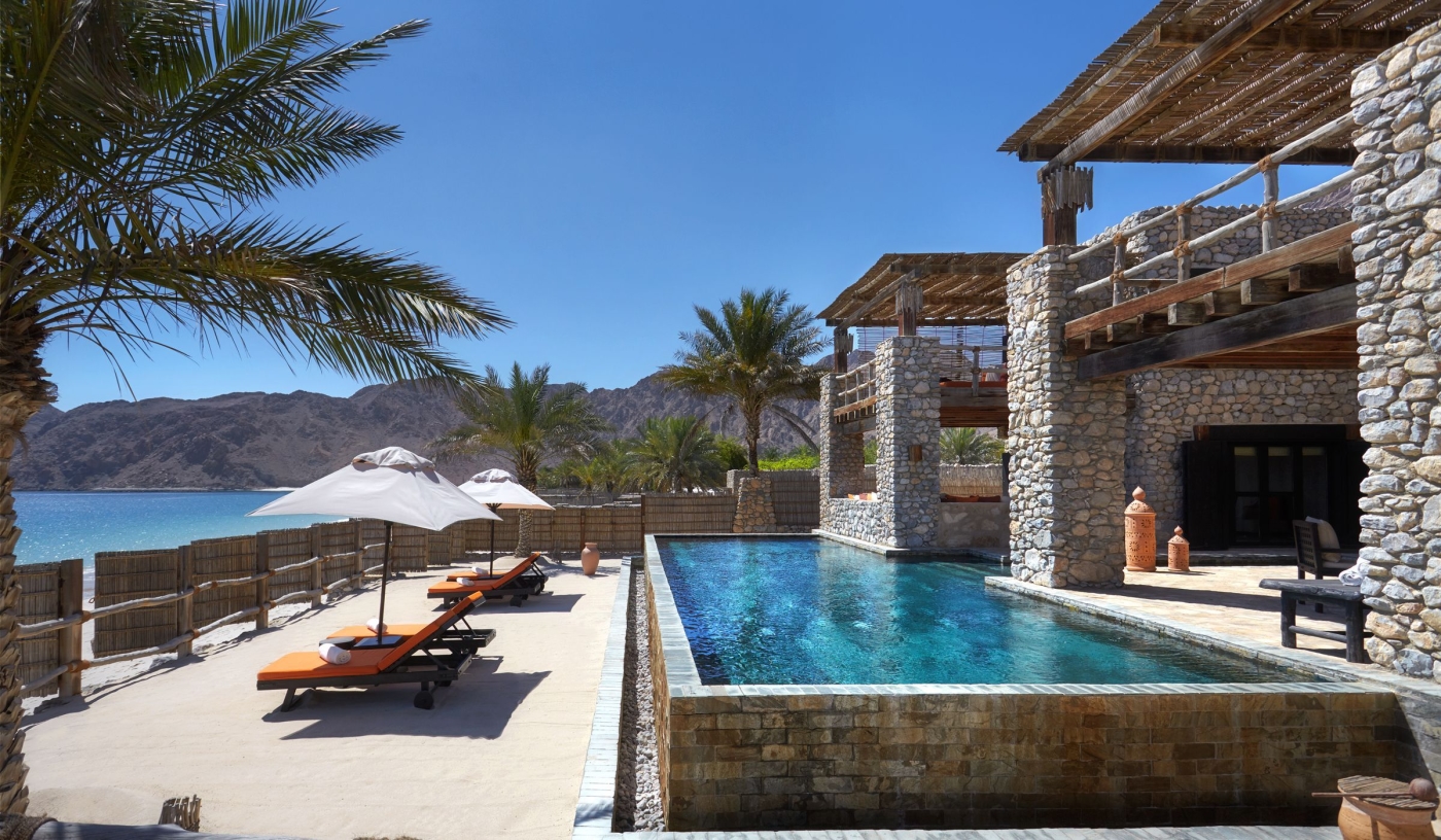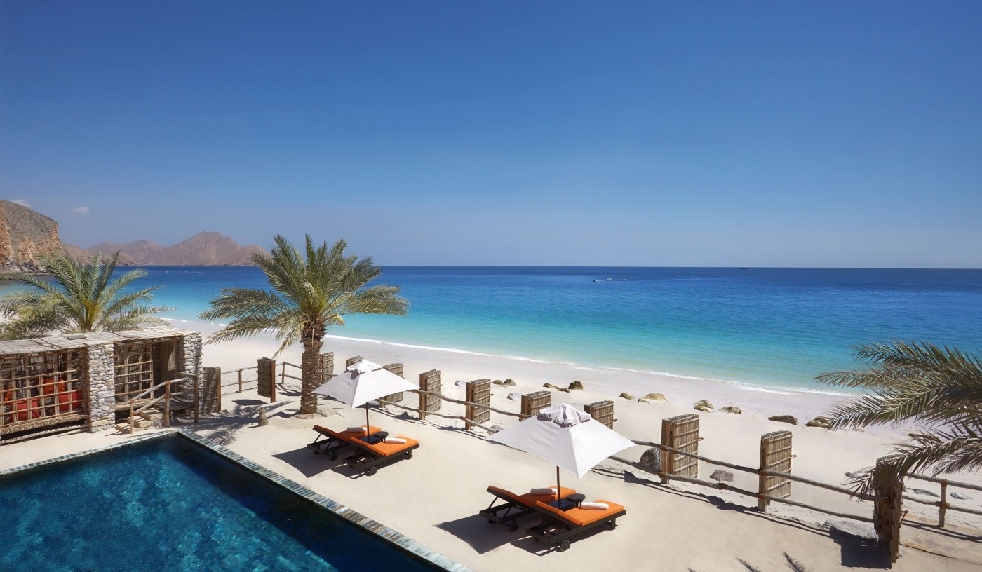 Surely the only resort in the world where you can arrive by tandem paraglide flight, Six Senses Zighy Bay is utterly idyllic and blissfully secluded, tucked between the Al Hajar Mountains and a mile-long sandy beach on the dramatic Musandam Peninsula.