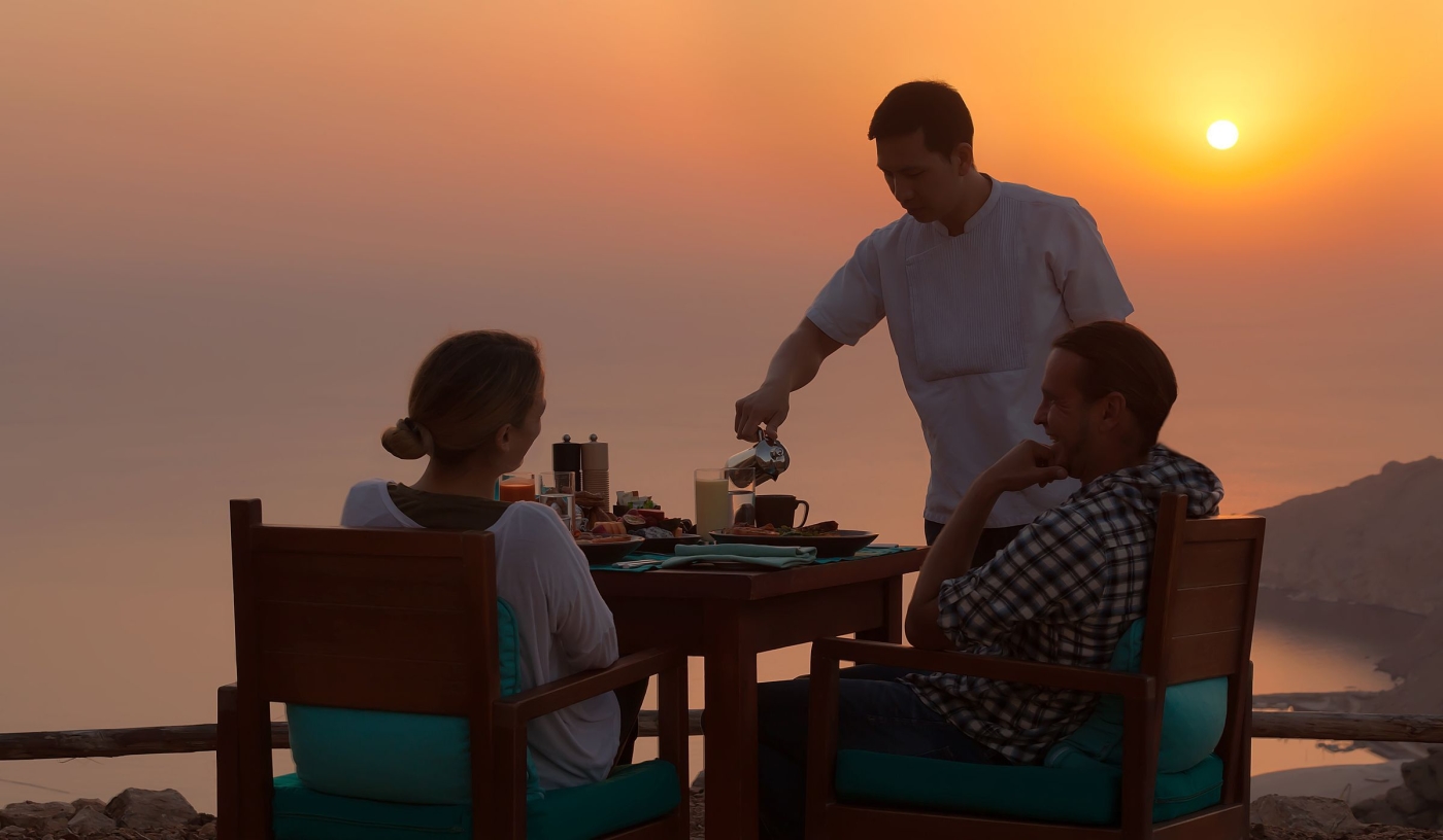 Restaurants include Sense on the Edge, a clutch of cliff-edge tables at the top of the mountain, and Shua Shack, where lamb is slow cooked beneath the sand, Bedouin style
