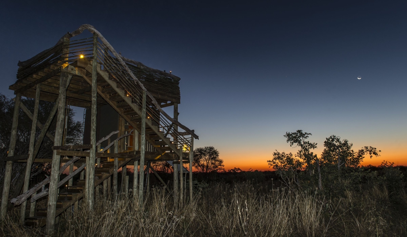 An intimate and rustic camp offering total immersion within the wilderness, with just three treehouse towers completely open to the African night sky.
