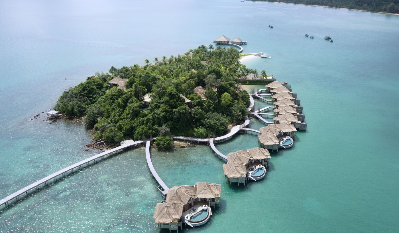 Set across two neighbouring islands in the Gulf of Thailand, the retreat is reached by a sleek speedboat transfer across clear waters