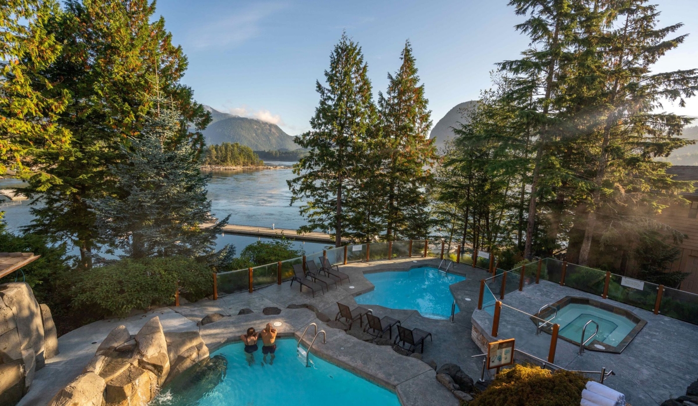 Surrounded by pristine wilderness, the resort offers wildlife encounters from orcas and dolphins to bald eagles and grizzly bears
