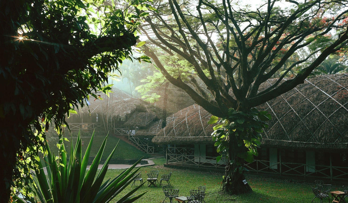 Cottages are built using traditional methods, with elephant grass thatch and local stone keeping interiors naturally cool throughout the year
