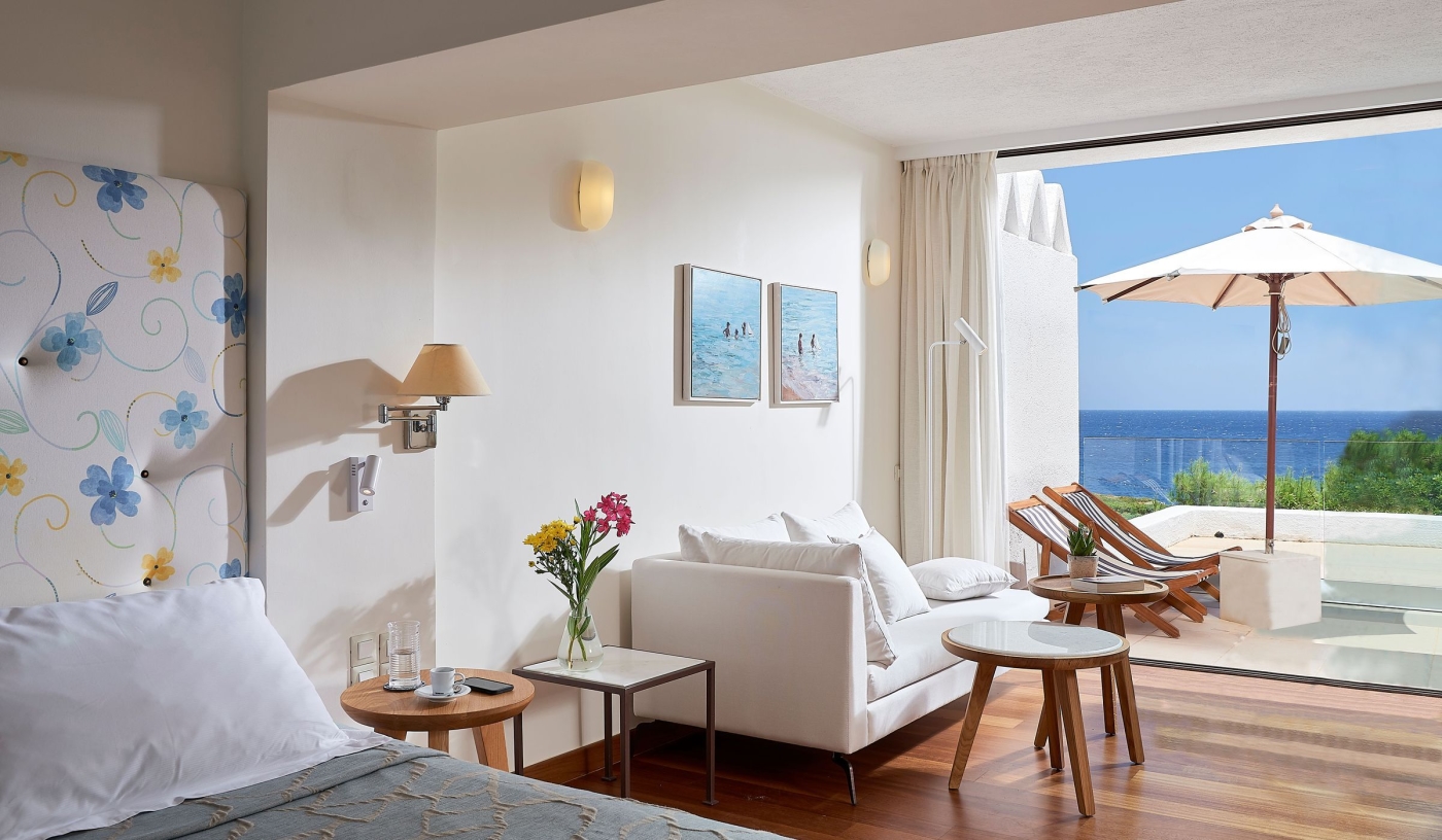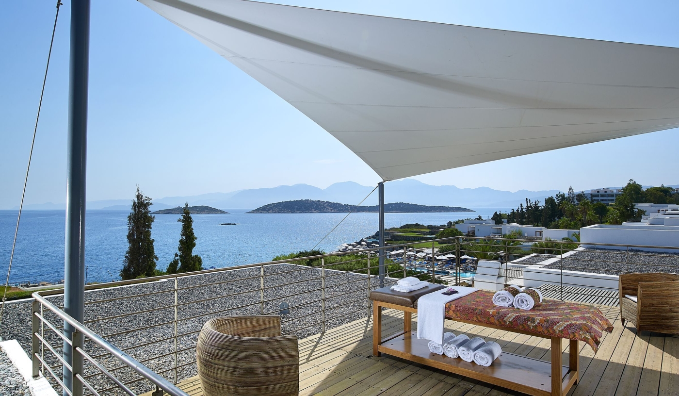 This contemporary design hotel offers sweeping views across Elounda’s Mirabello Bay to the island of Spinalonga. Among the rooms and suites, all have private pools with sunbeds and outdoor showers, and because the whole resort is staggered up a hillside, every room boasts exceptional sea views.